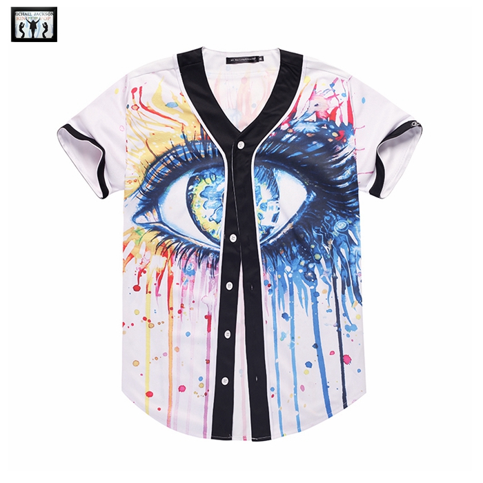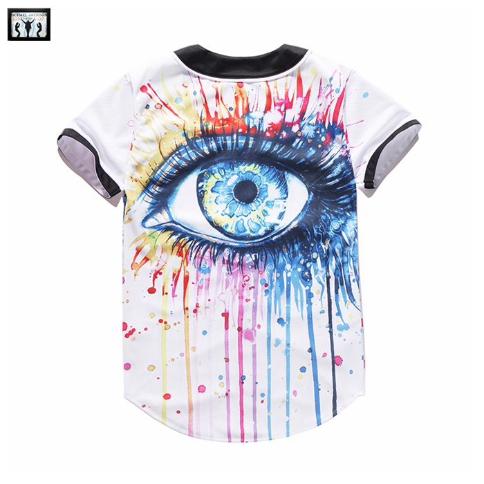 西海岸歐美潮男女情侶裝棒球服中長款 逼真眼睛個性美女印花短袖T1入