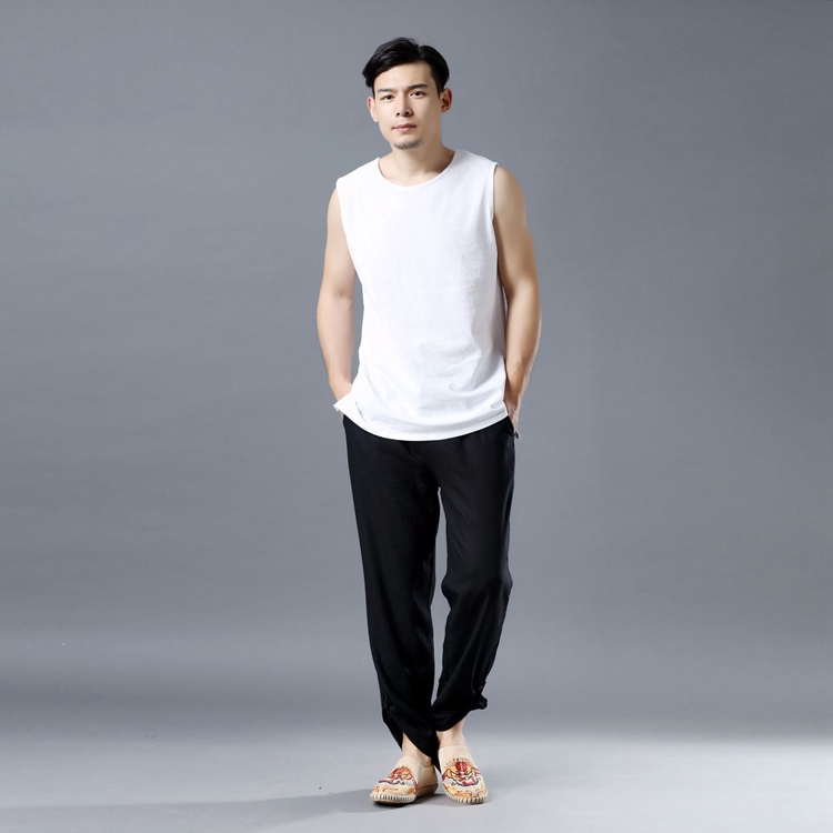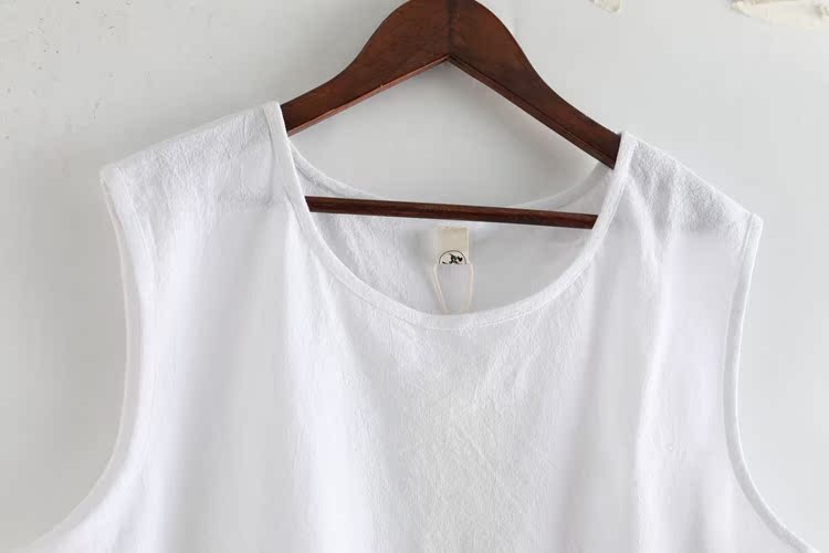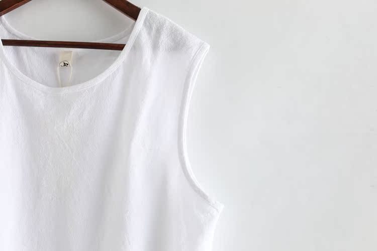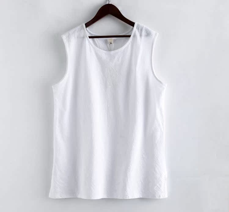 2019新款亞麻復古男裝白色男士背心男無袖t男寬松大碼青年坎肩夏1入