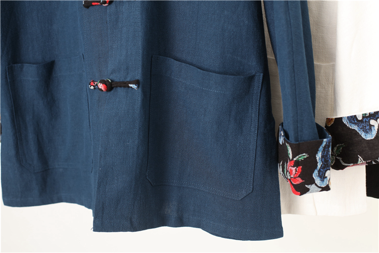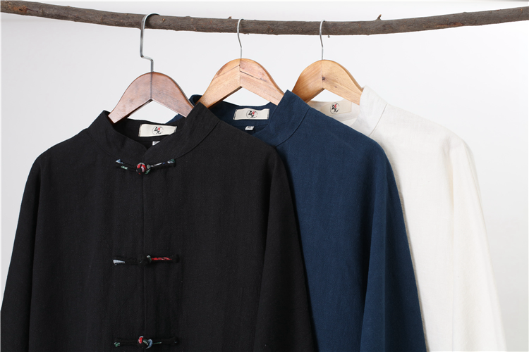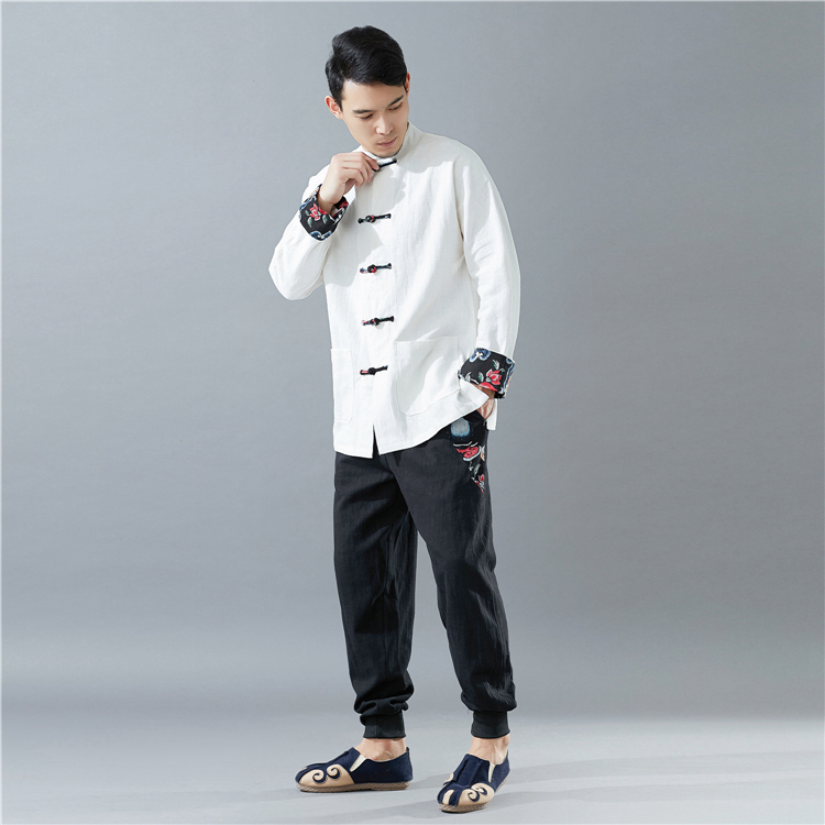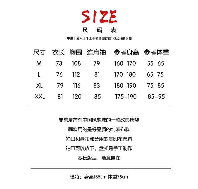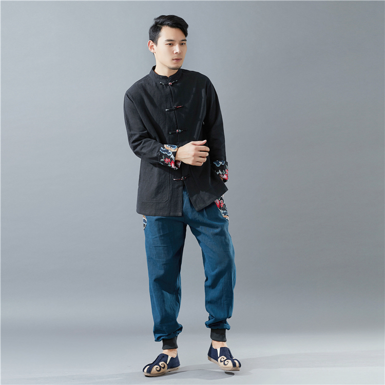2019新款中國風男裝 男青年麻唐裝改良印花拼接復古盤扣大碼上衣1入