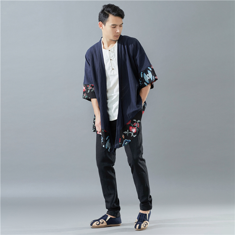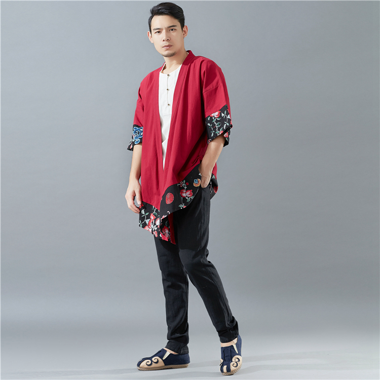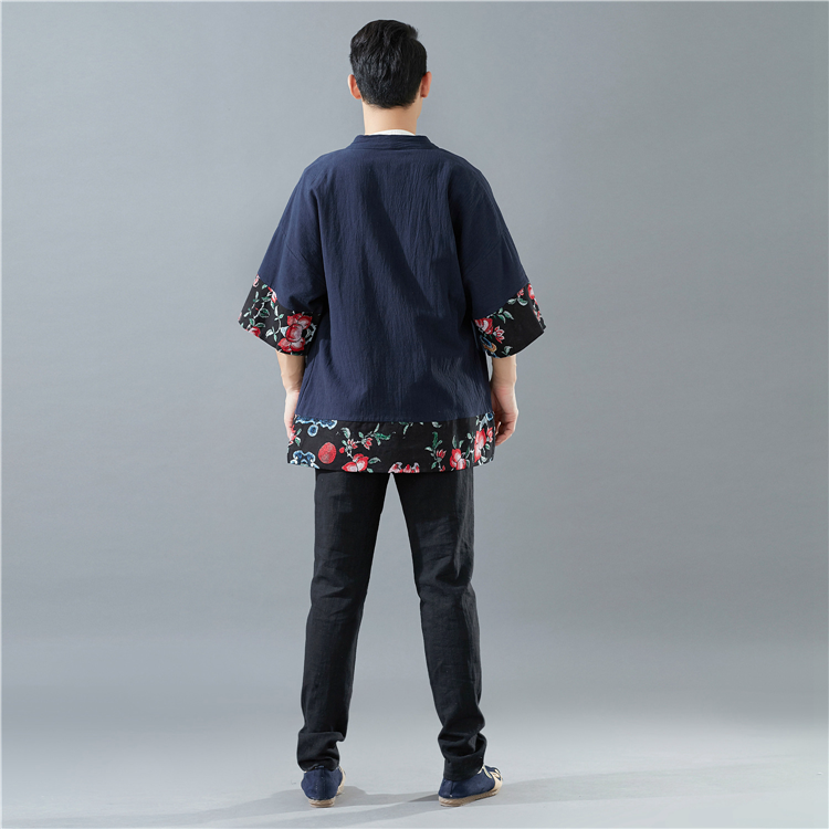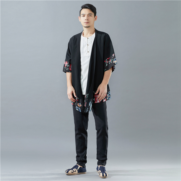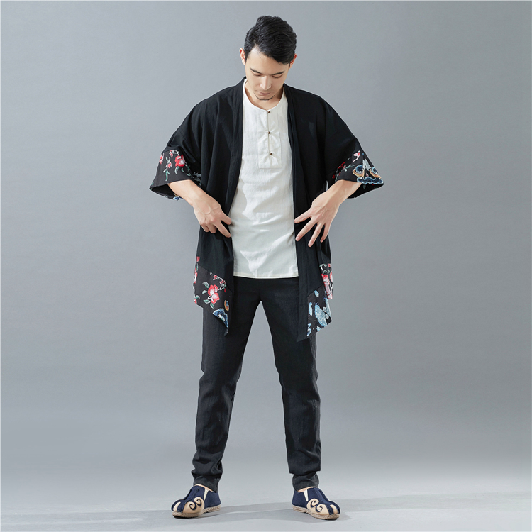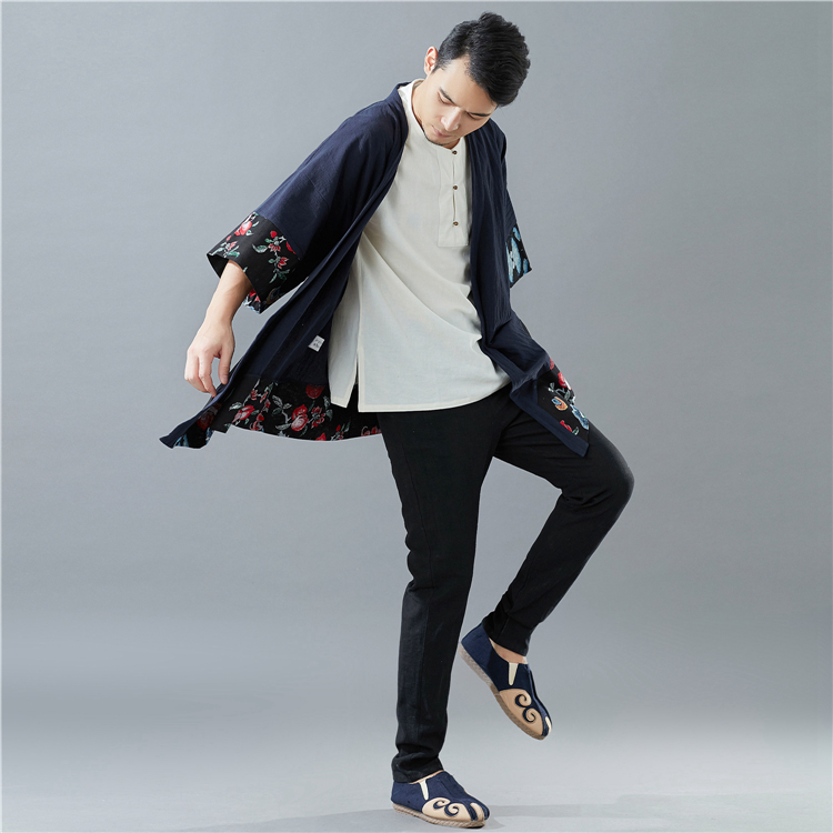 2019春男裝中國風男裝外套中式男潮印花拼接中長款寬松民族風上衣1入