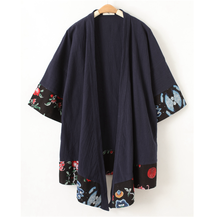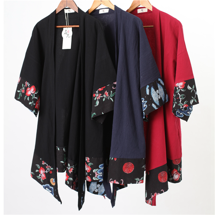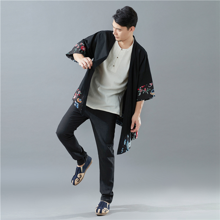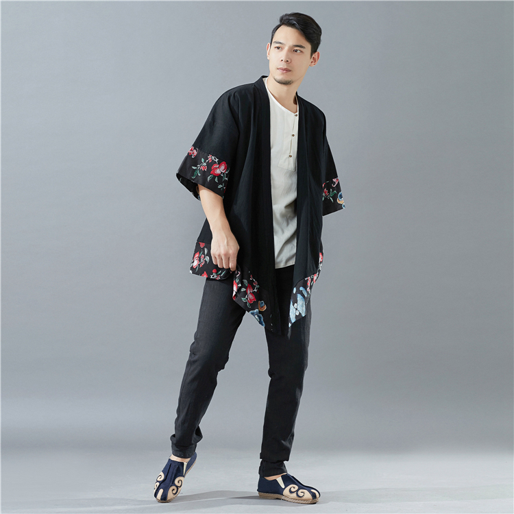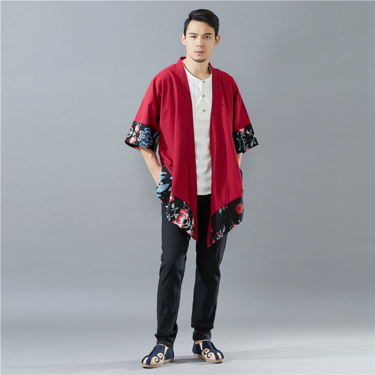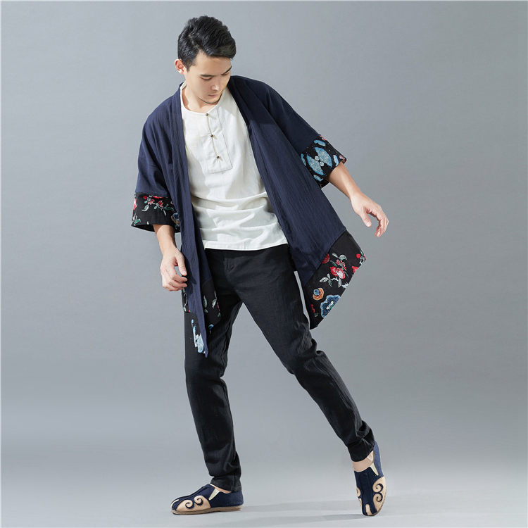 2019春男裝中國風男裝外套中式男潮印花拼接中長款寬松民族風上衣1入