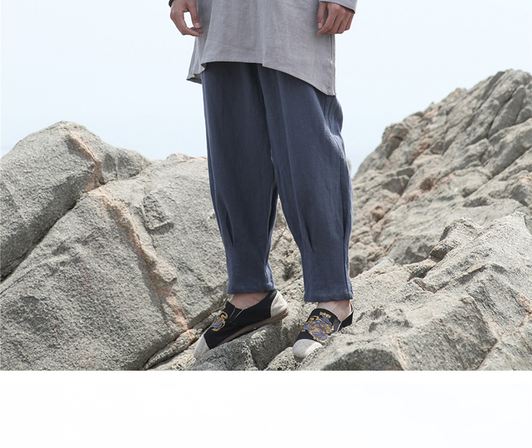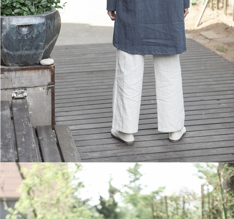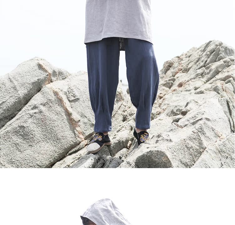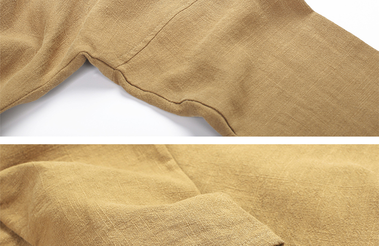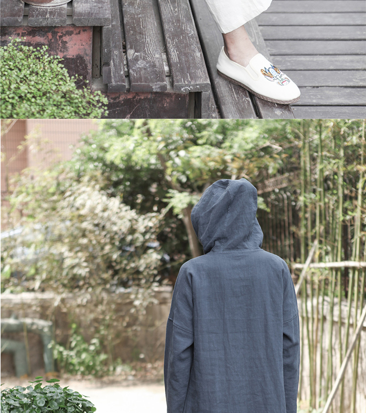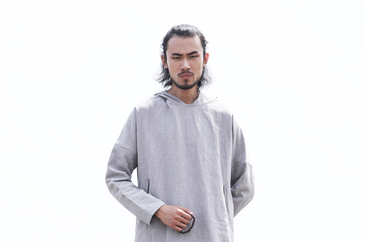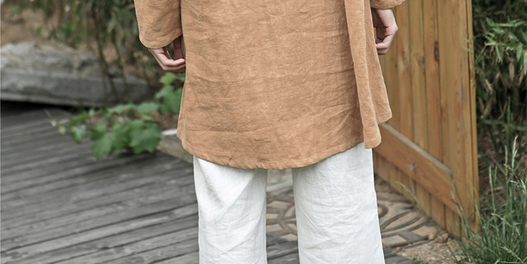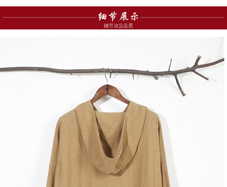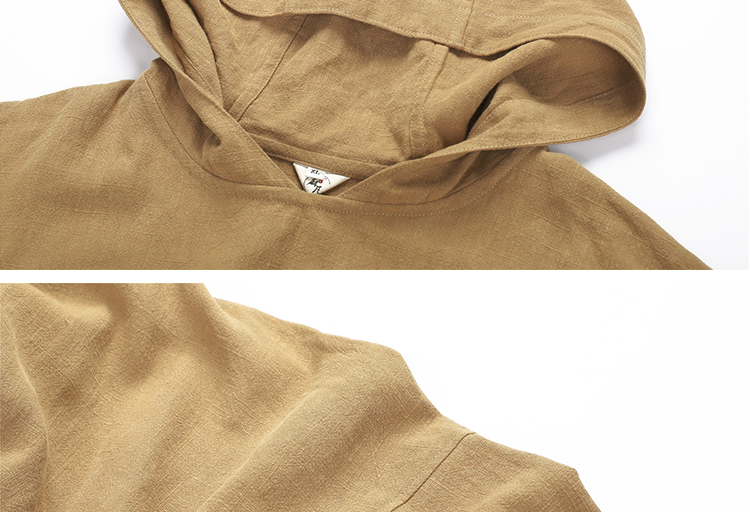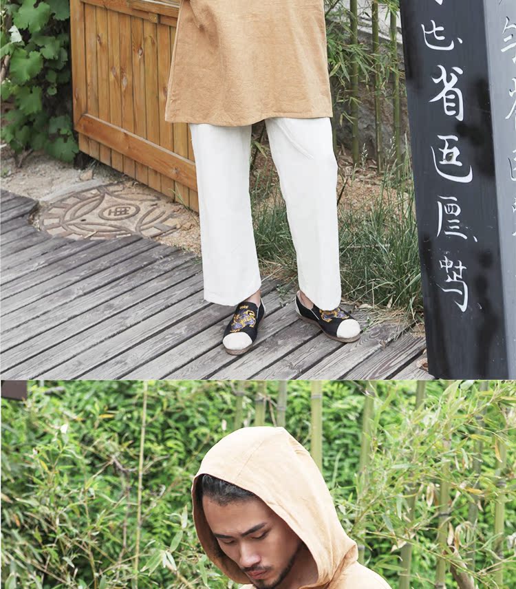 2019秋季新款男式長袖亞麻連帽t恤 純色復古民族風休閑長款唐裝男1入