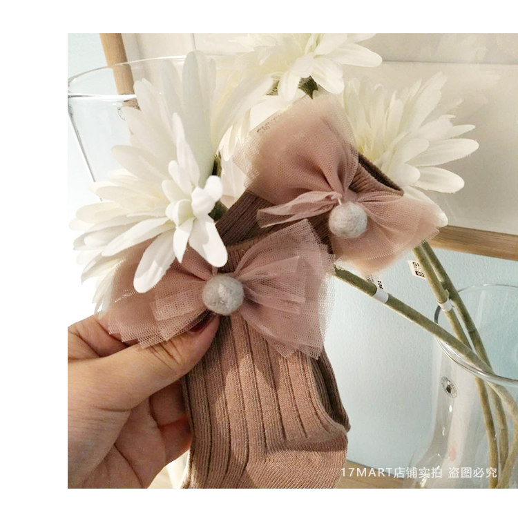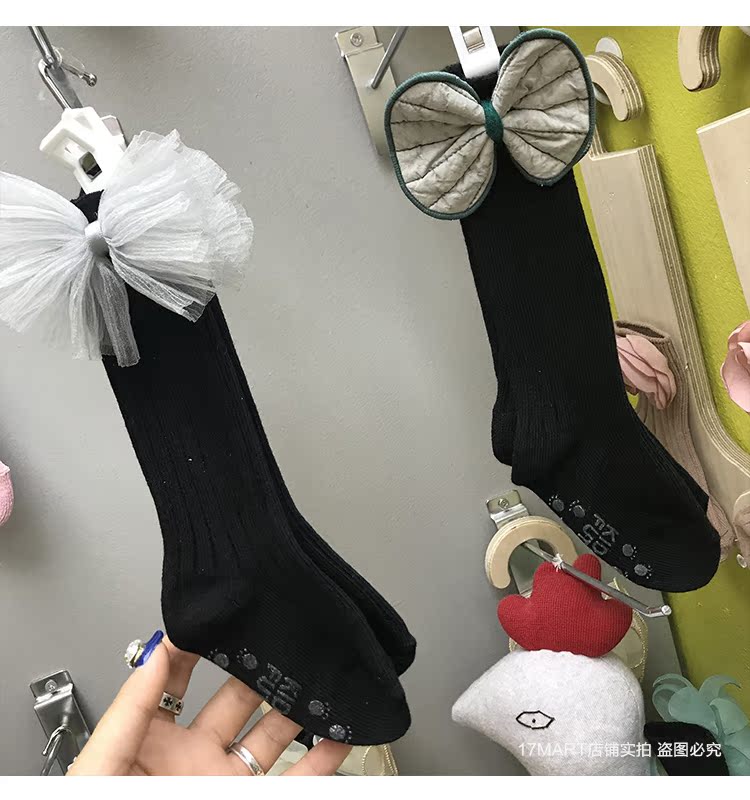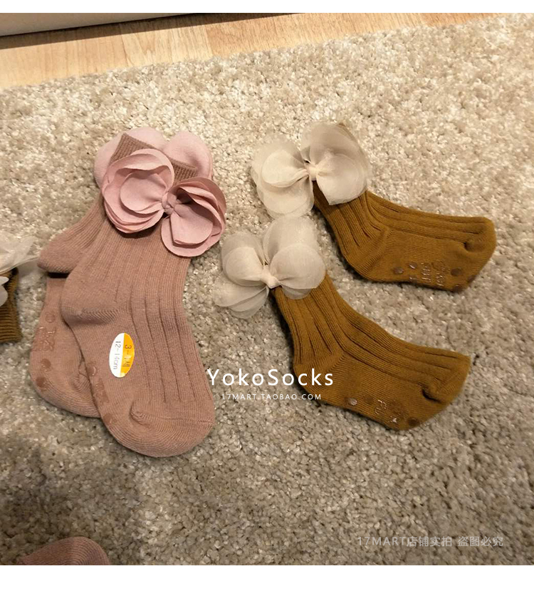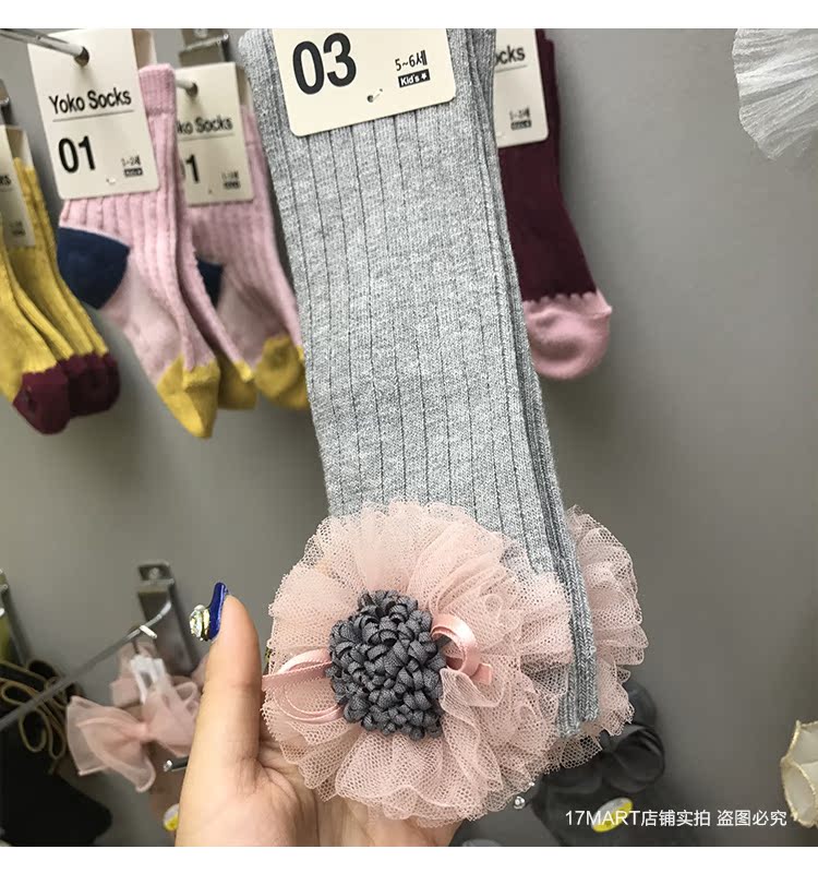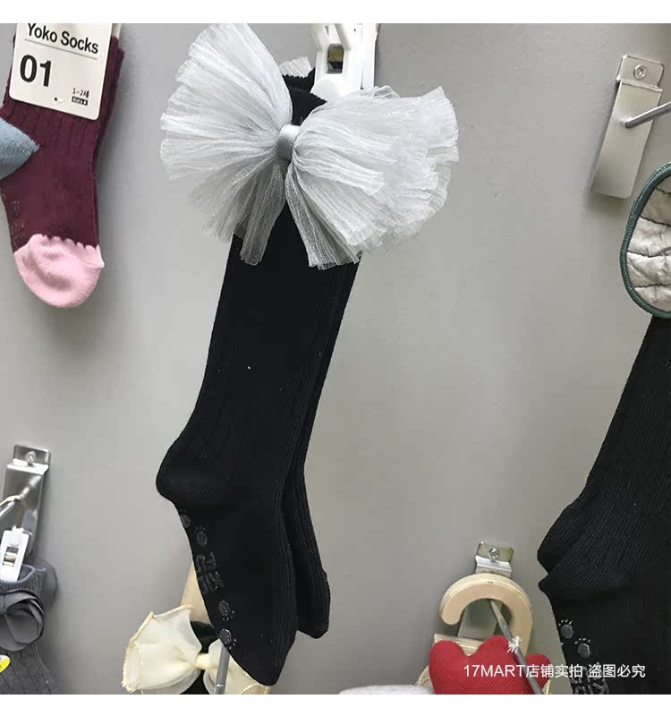 韓國進口yokosocks兒童襪可愛蝴蝶結花朵裝飾高筒中筒襪女童襪子1入