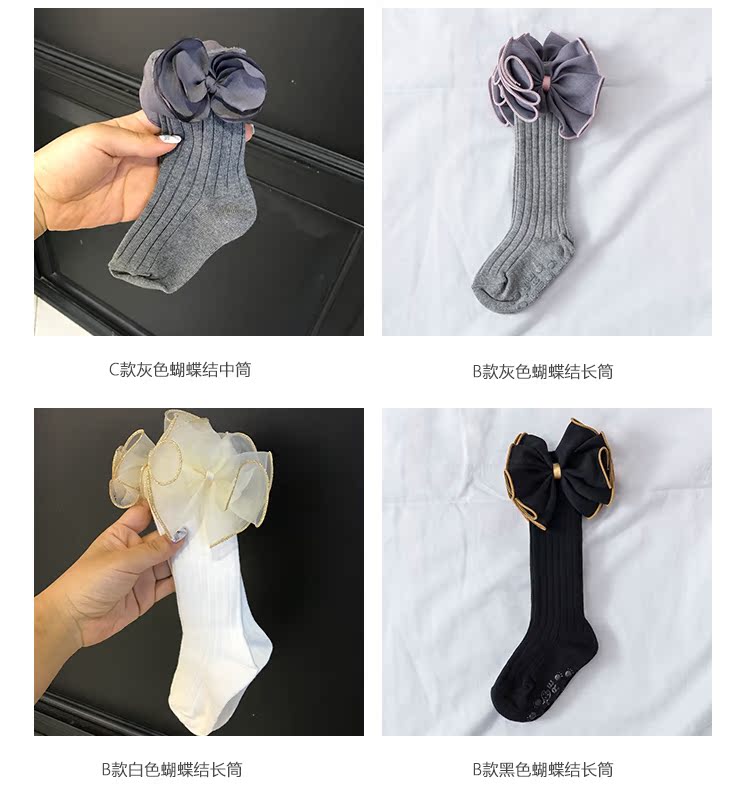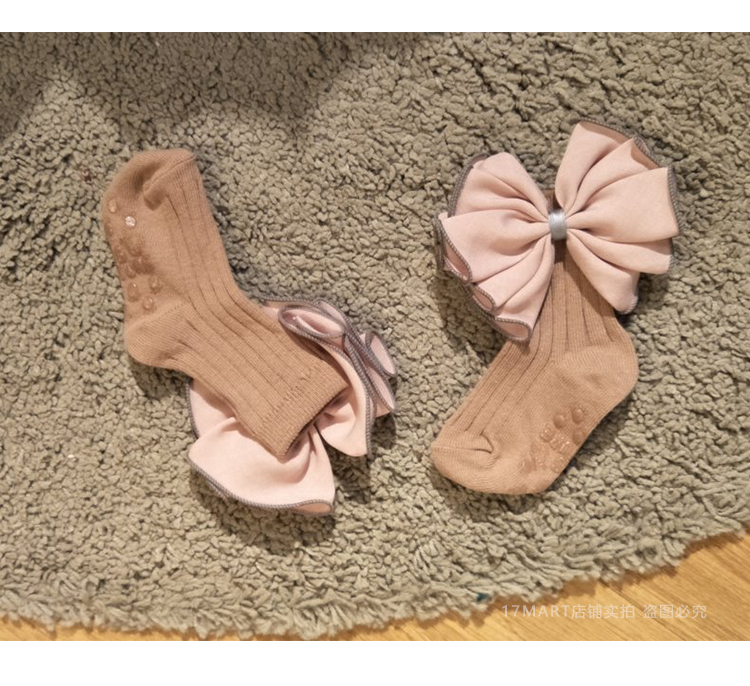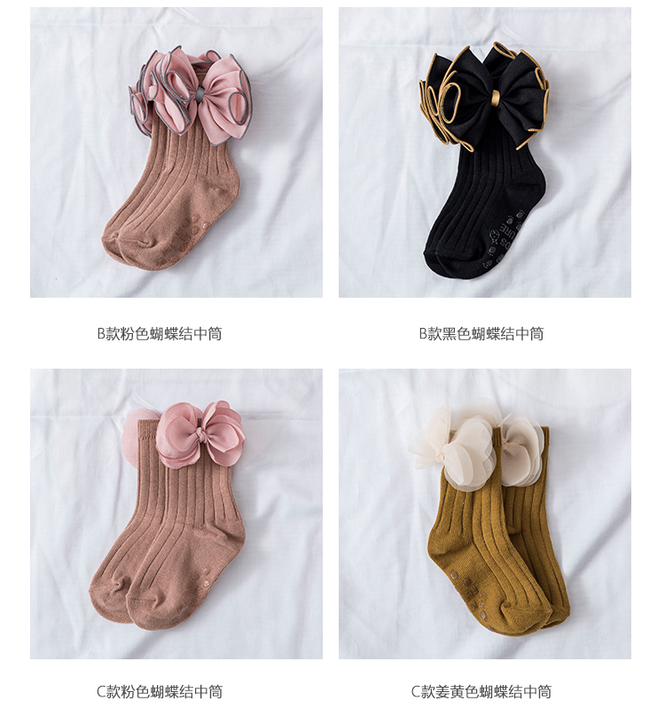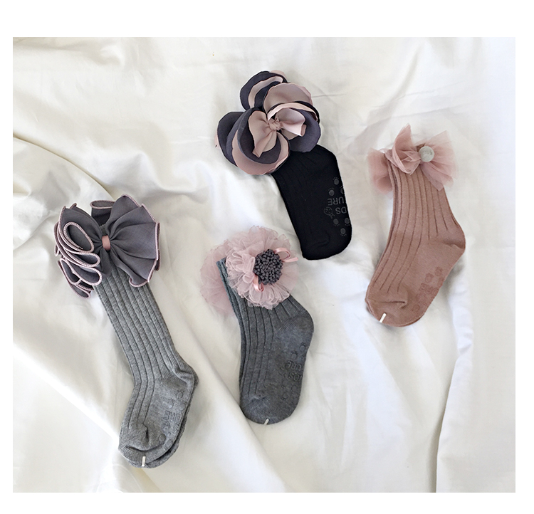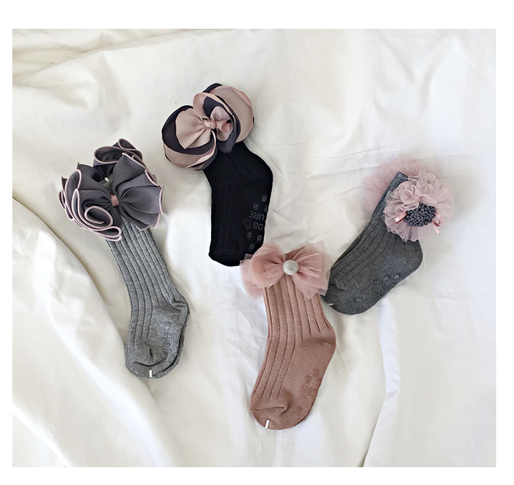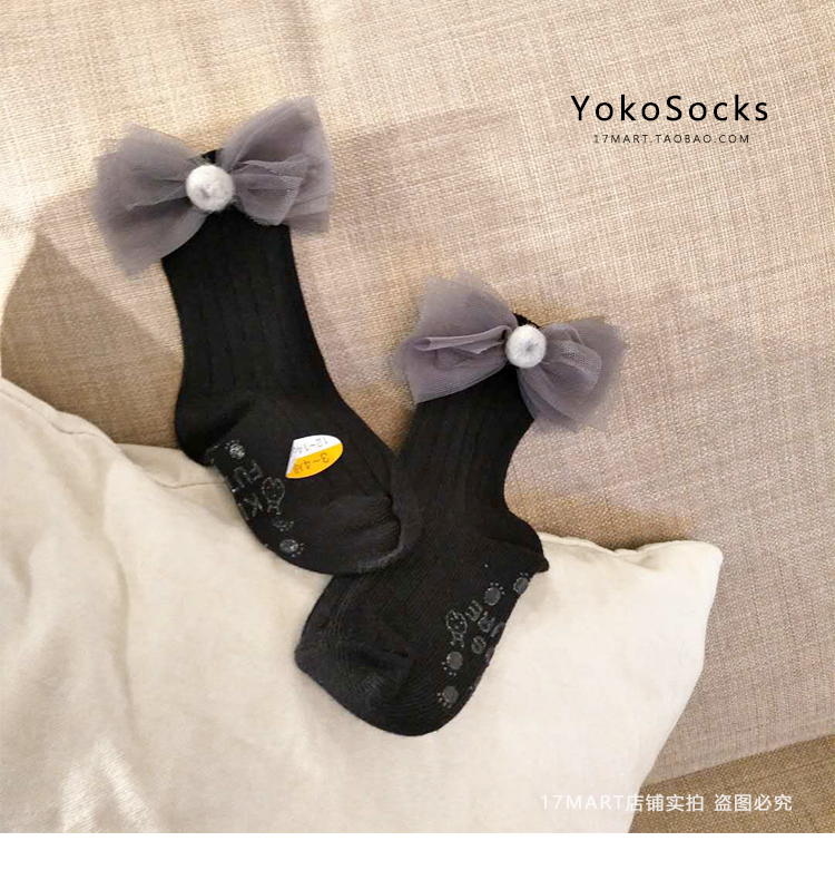 韓國進口yokosocks兒童襪可愛蝴蝶結花朵裝飾高筒中筒襪女童襪子1入
