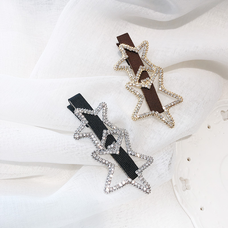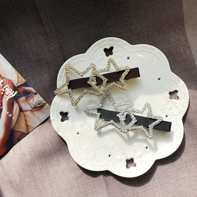 韓國頭飾發卡簡約鑲鉆大五角星星鴨嘴發夾成人氣質百搭劉海邊夾子1入