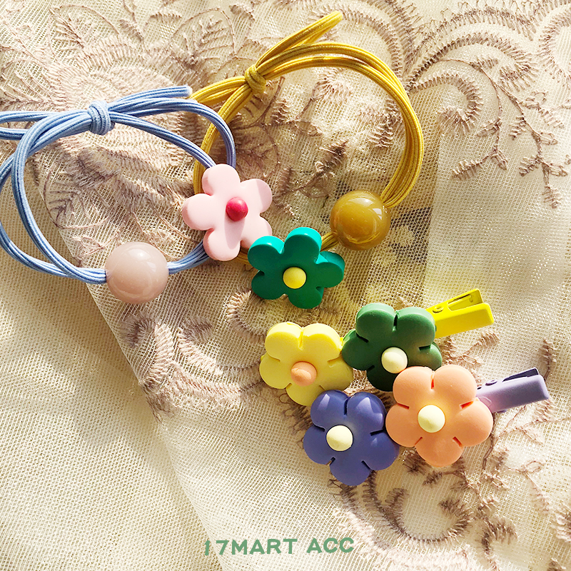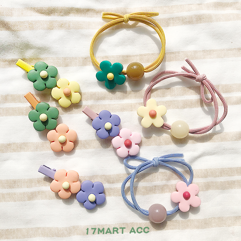 17mart韓國可愛彩色軟陶泥花朵糖果色皮筋發繩頭飾女孩頭繩發夾子1入