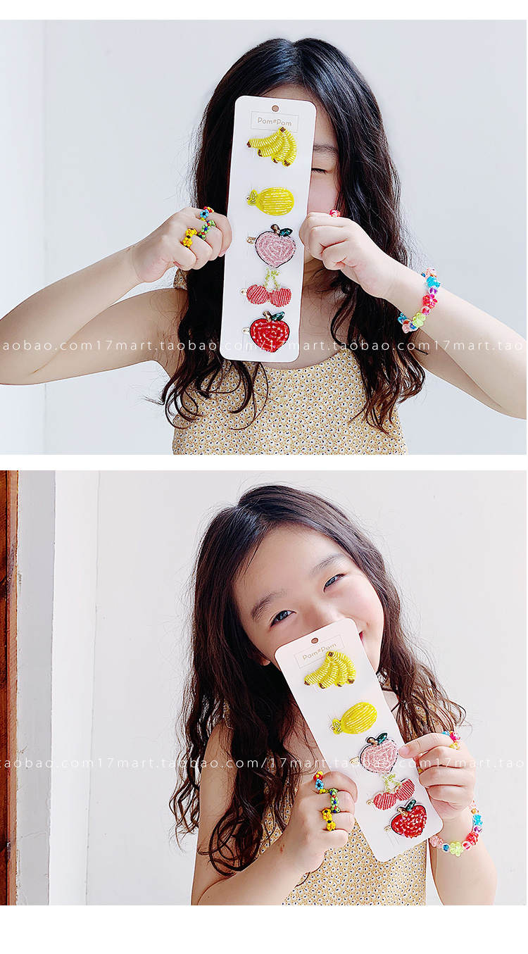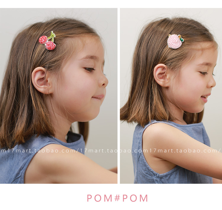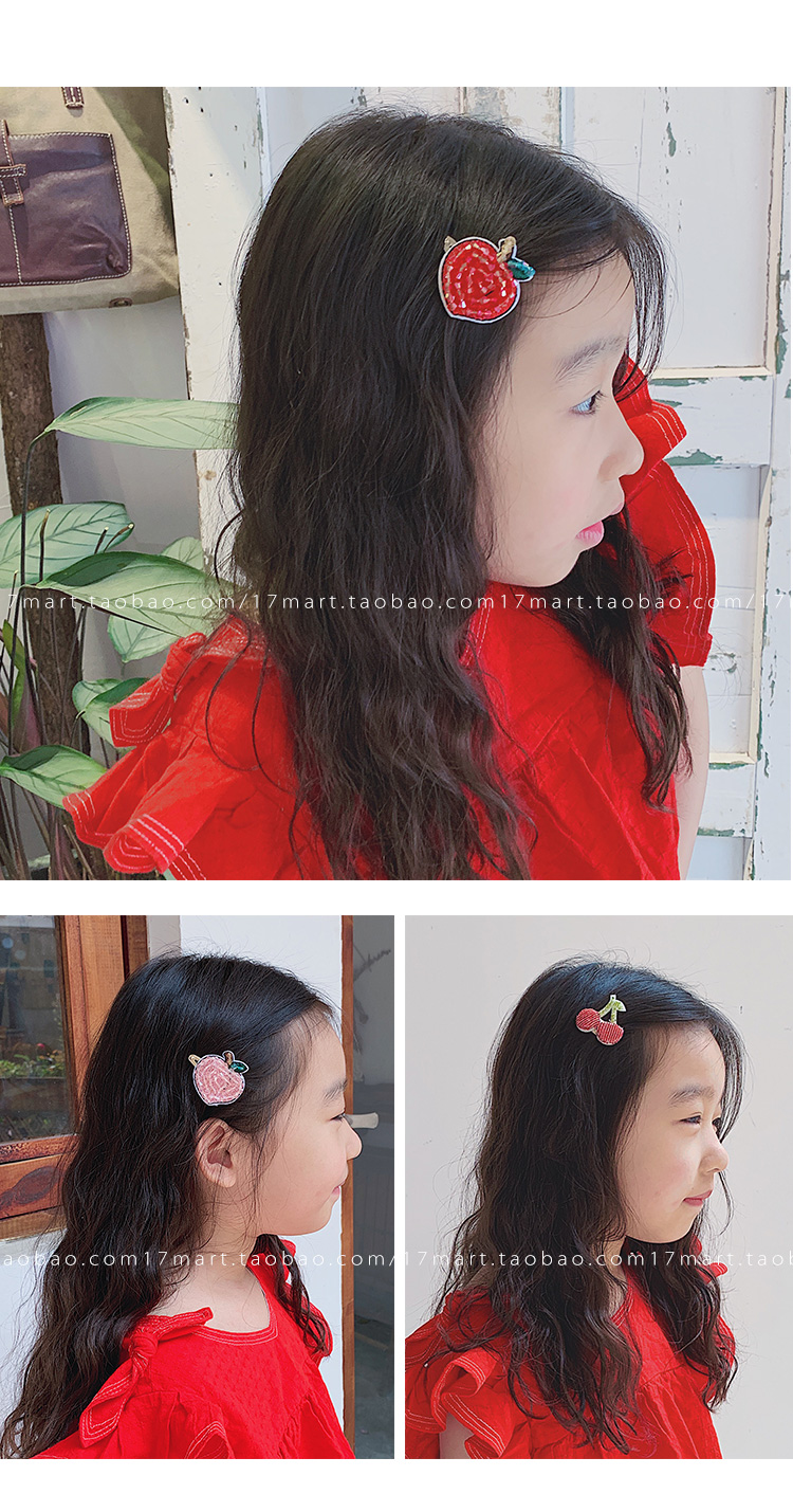 韓國水果發卡發繩兒童bb發夾南大門pom可愛櫻桃串珠女童劉海頭飾1入
