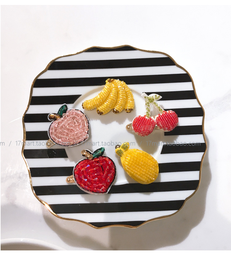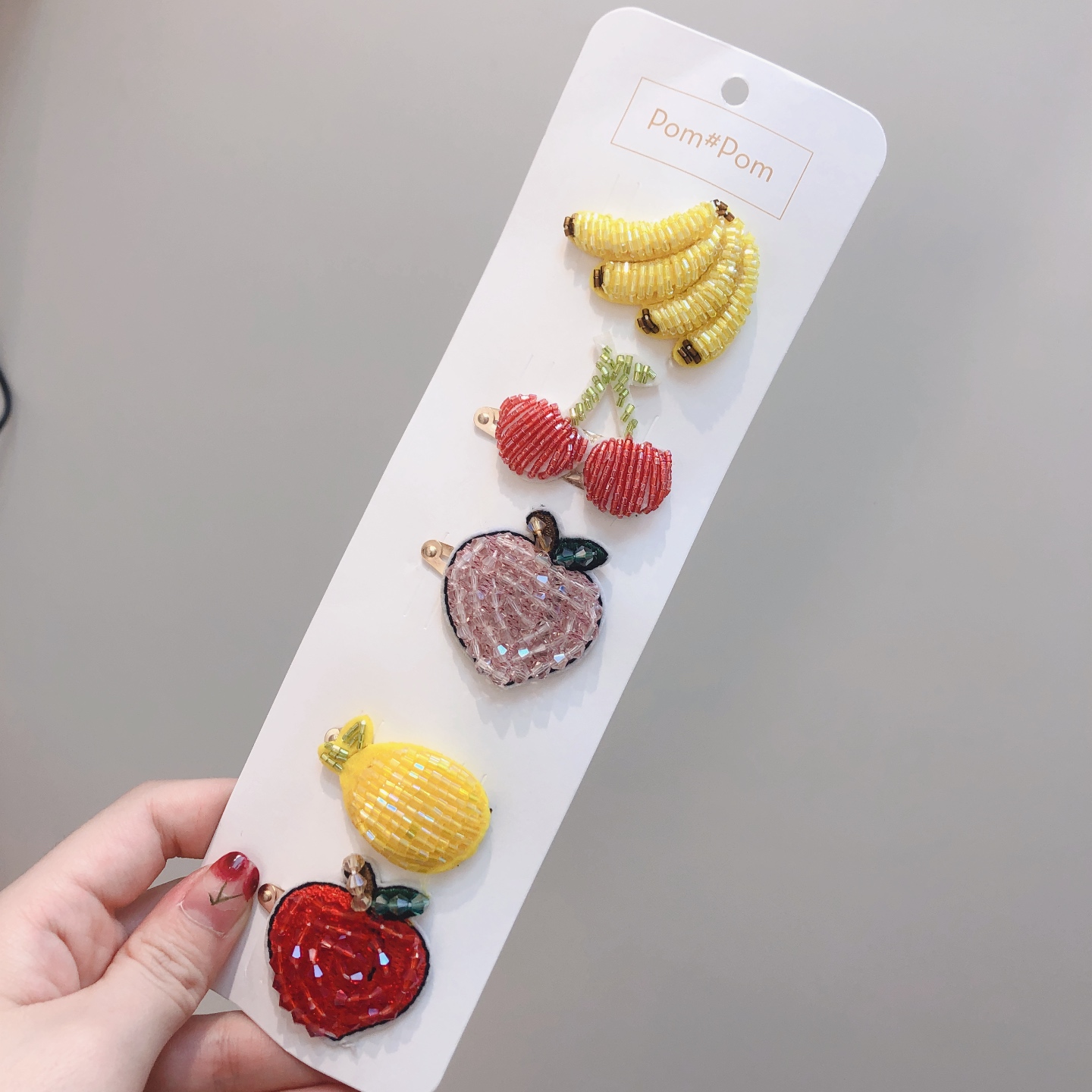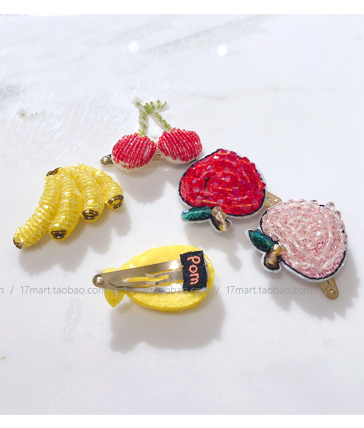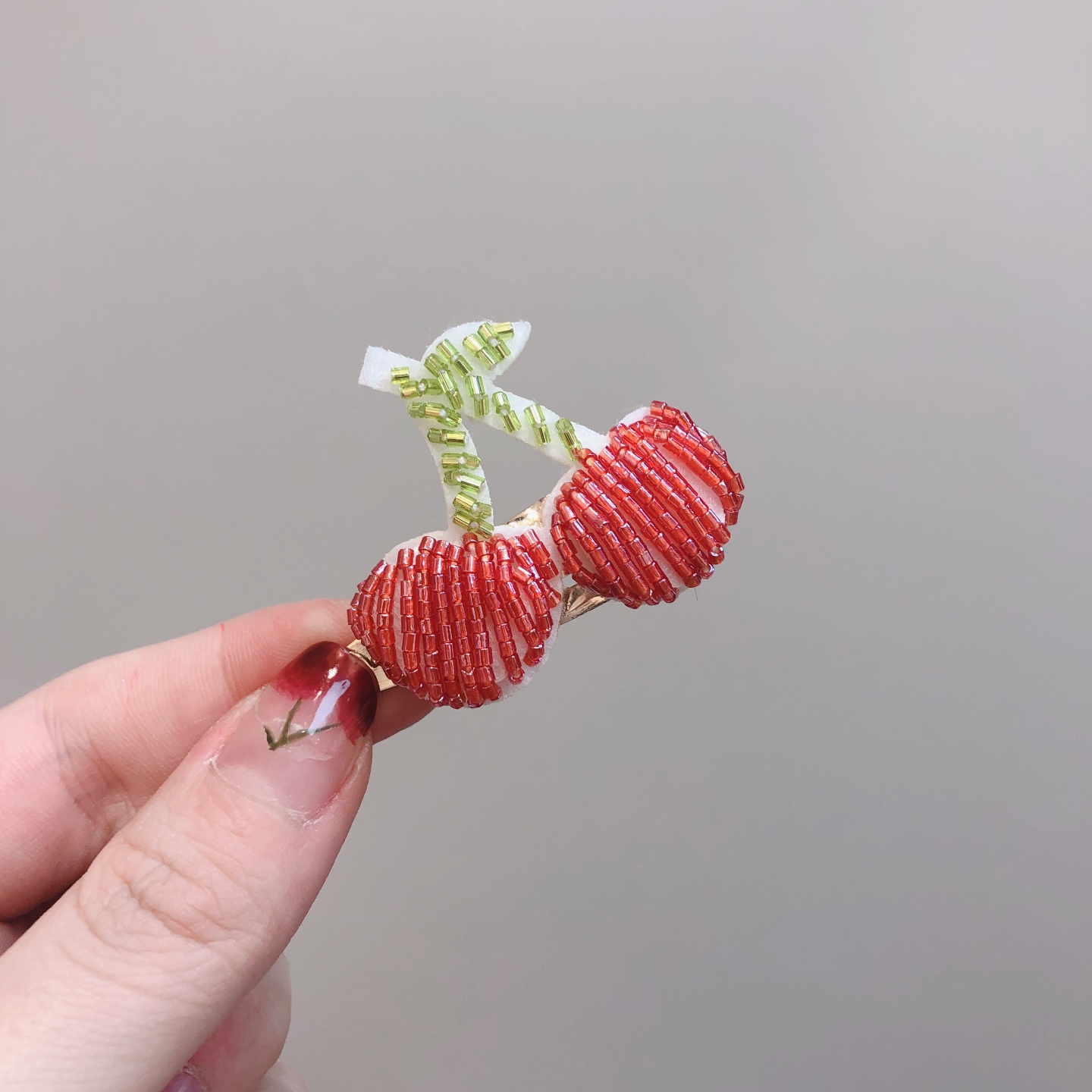韓國水果發卡發繩兒童bb發夾南大門pom可愛櫻桃串珠女童劉海頭飾1入