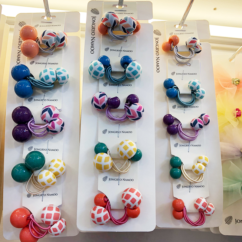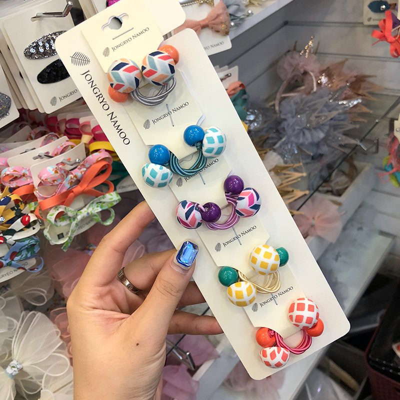 韓國進口palmtree兒童發飾可愛圓球發圈女童不傷發頭繩皮筋皮套1入