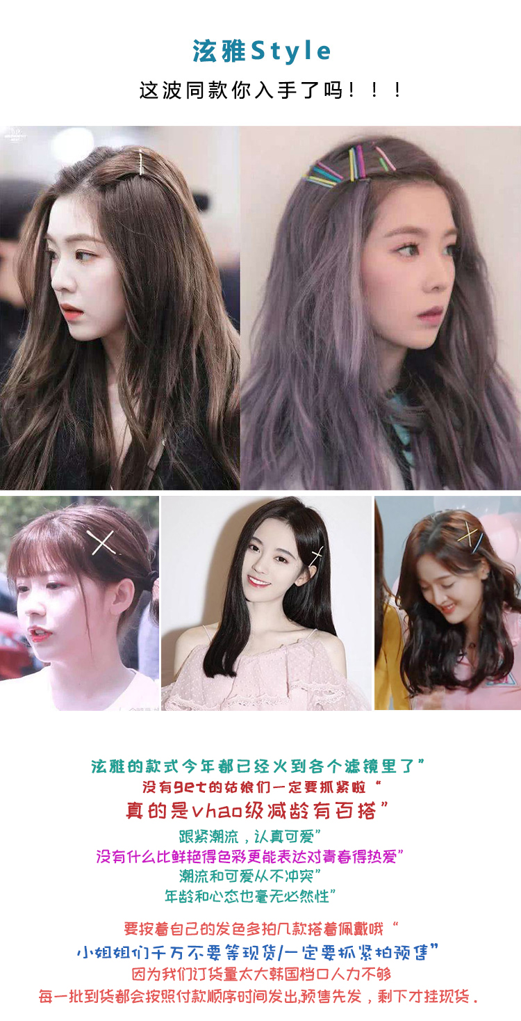 韓國進口少女彩色發卡頭飾東大門簡約一字夾劉海夾邊夾網紅發夾1入
