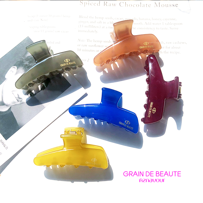 韓國發飾進口AZ簡約純色果凍色系抓夾成人氣質款中號發抓頂夾頭飾1入