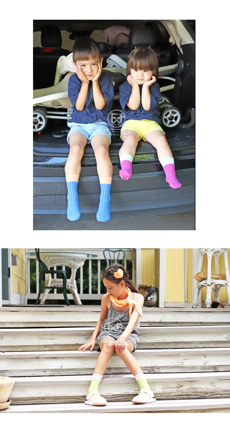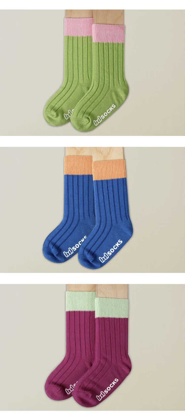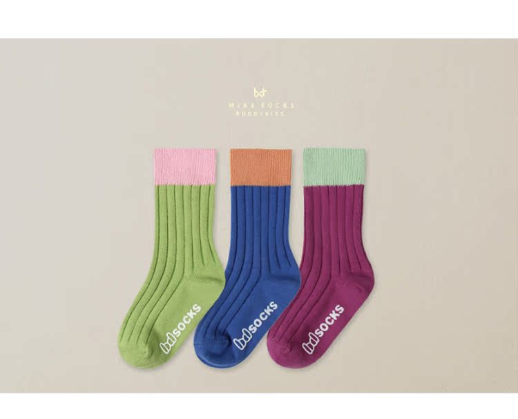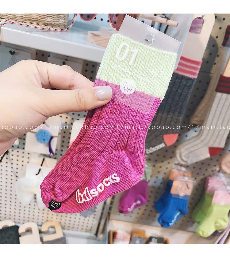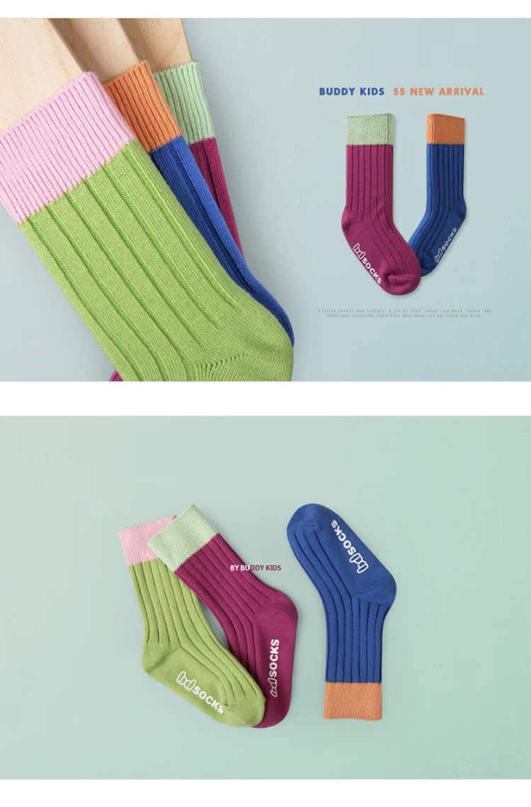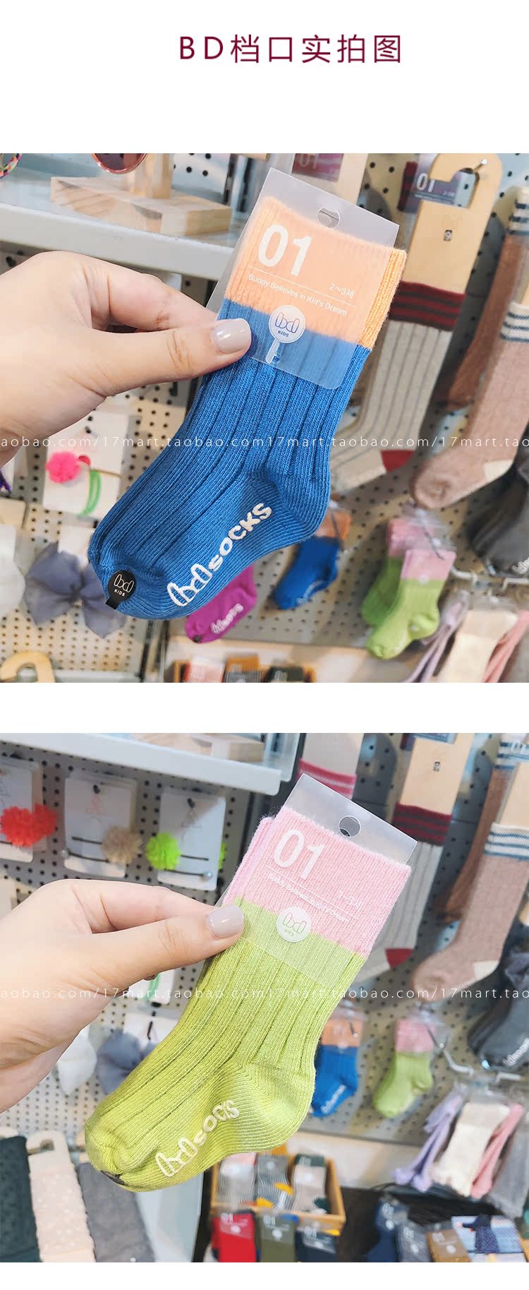韓國進口bdkids兒童春秋冬拼色襪子簡約百搭彩色男童女童中筒襪1入