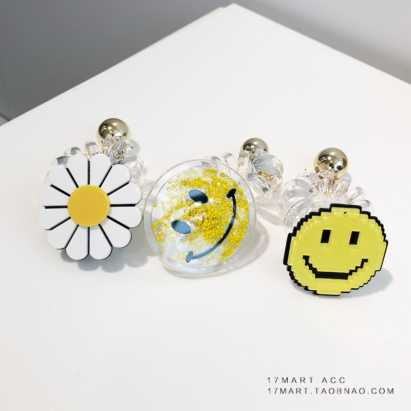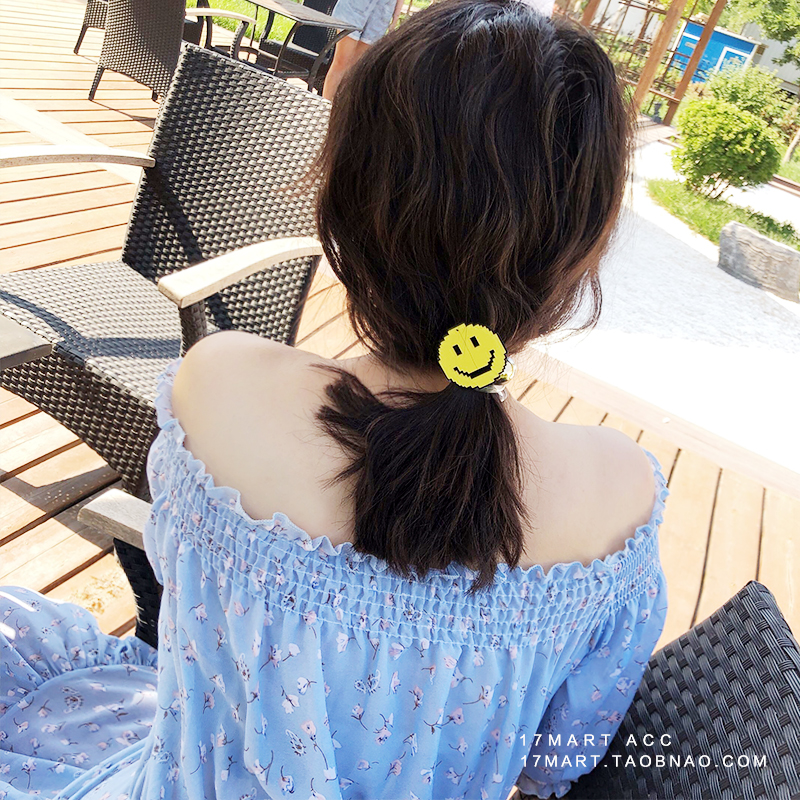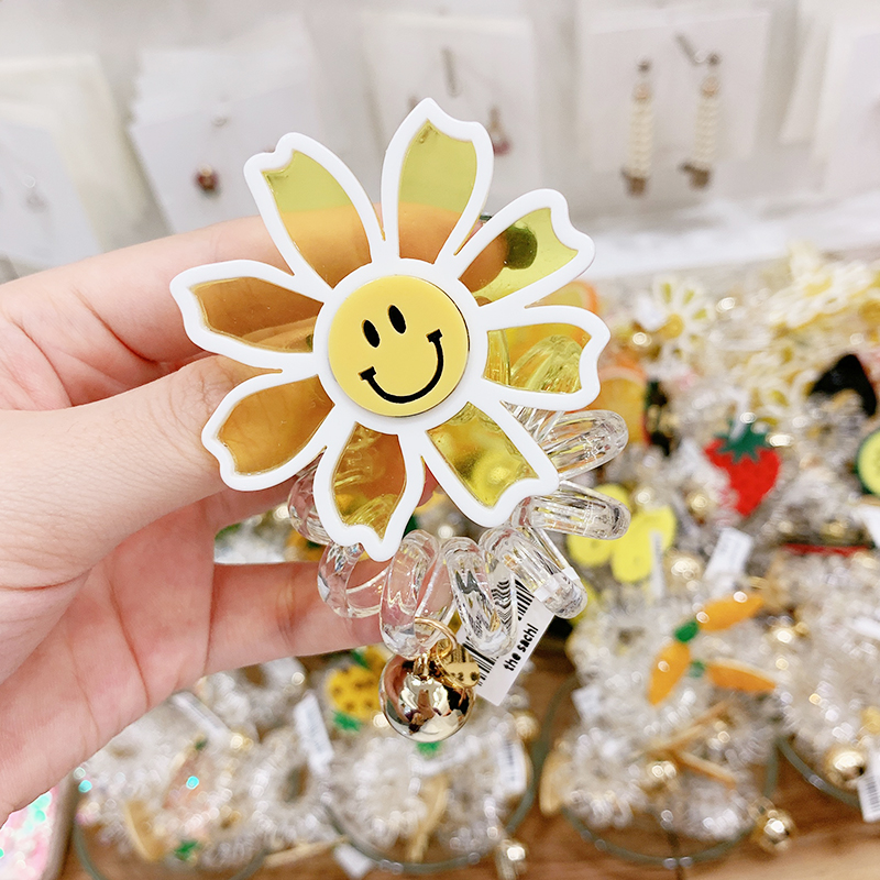 韓國東大門兒童電話線發繩笑臉向日葵皮筋發圈女頭飾發飾17mart1入