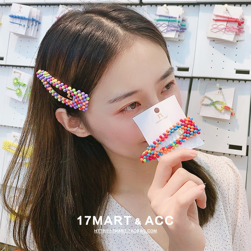 韓國東大門小清新彩色串珠水滴發夾時尚BB夾劉海夾子頭飾17mart1入