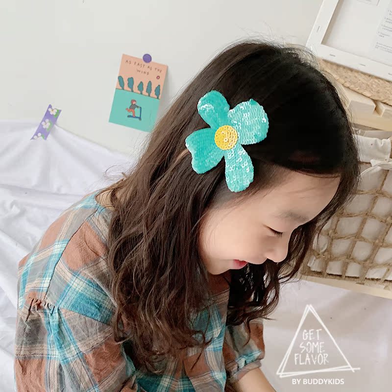 韓國BuddyKids兒童發夾彩色亮片花朵鴨嘴夾女孩劉海夾子頭飾發卡1入