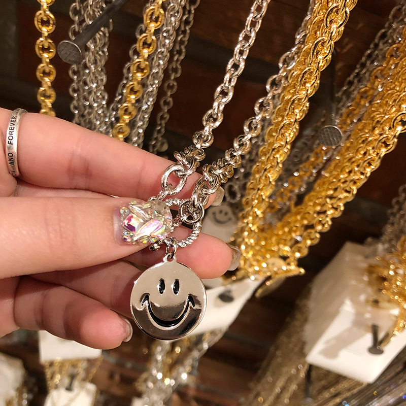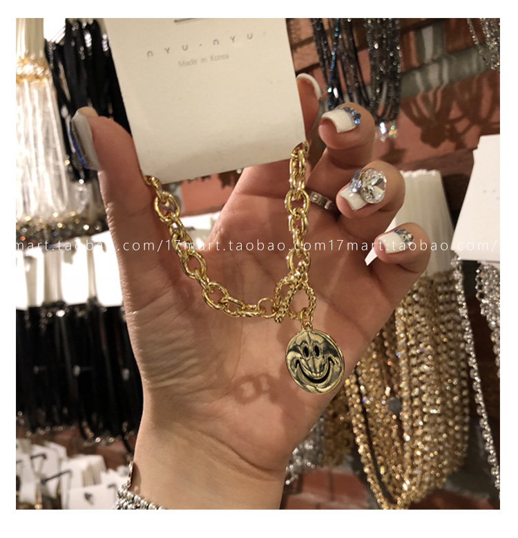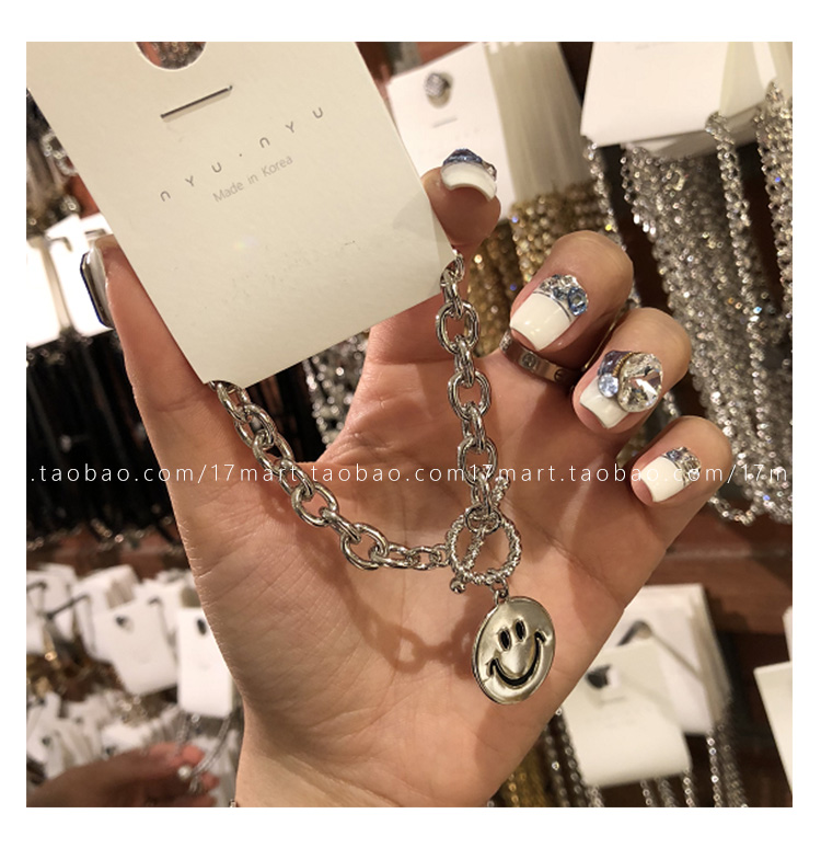 韓國進口笑臉手鏈女東大門網紅小眾設計chic簡約氣質項鏈毛衣鏈1入
