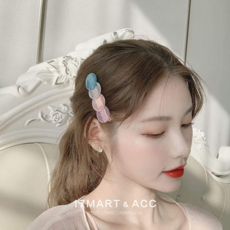 17mart韓國頭飾發卡小清新彩色亮片發夾東大門簡約氣質成人邊夾子1入
