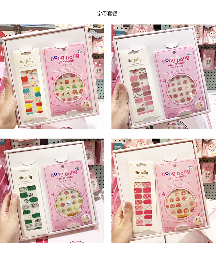 韓國進口兒童指甲貼卡通圖案貼紙防水女孩安全無毒3D美甲貼17mart1入