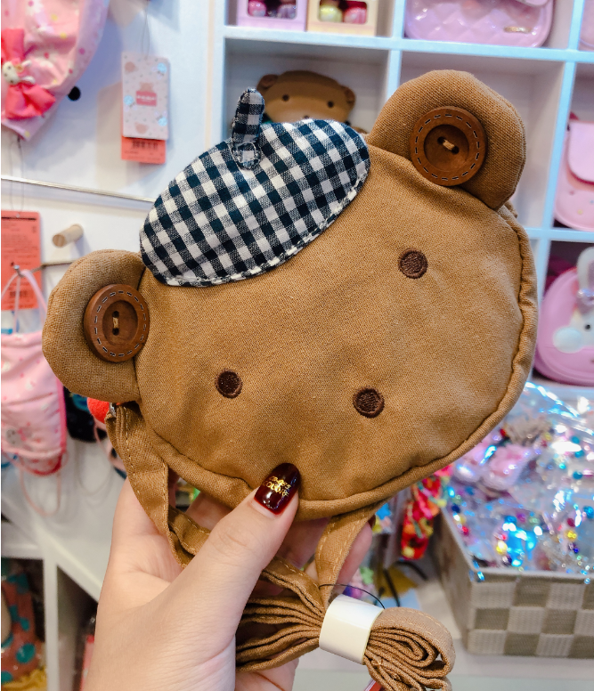 韓國winghouse兒童可愛兔子小熊單肩棉麻斜跨包卡通公仔小學生包1入