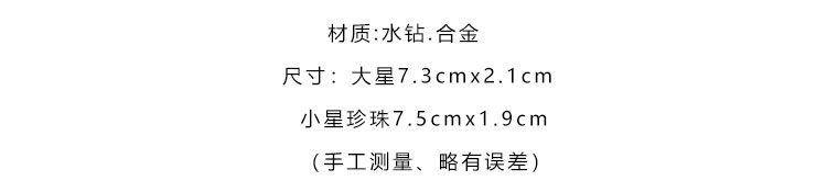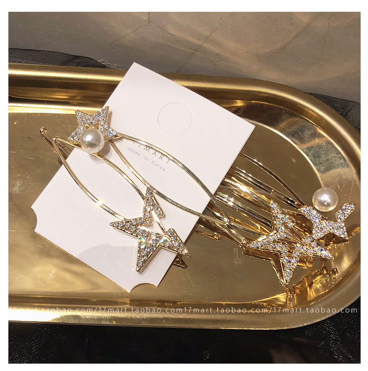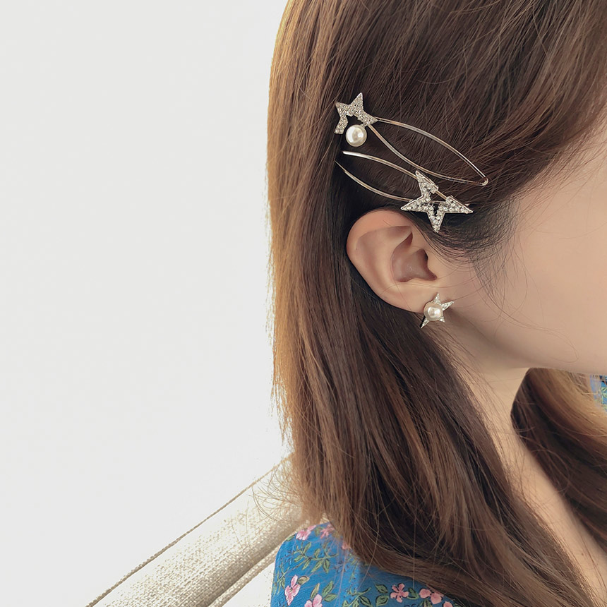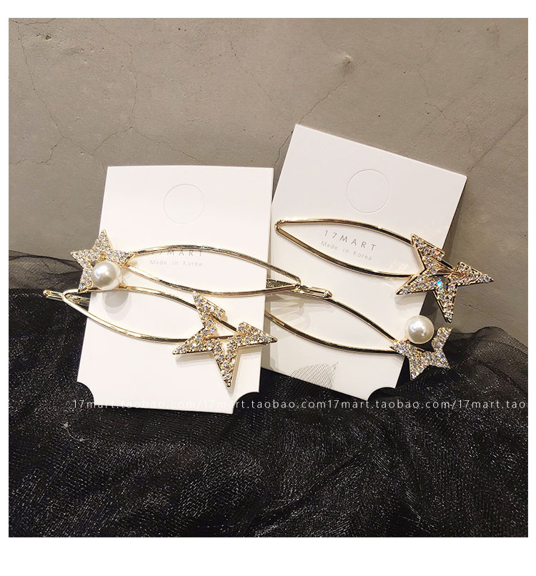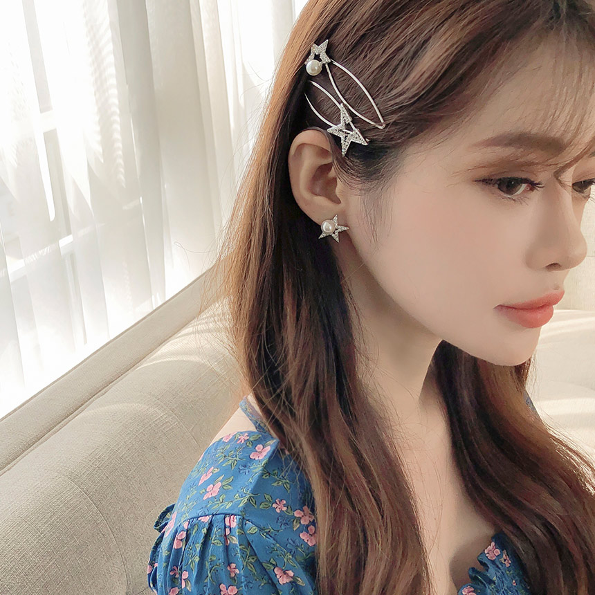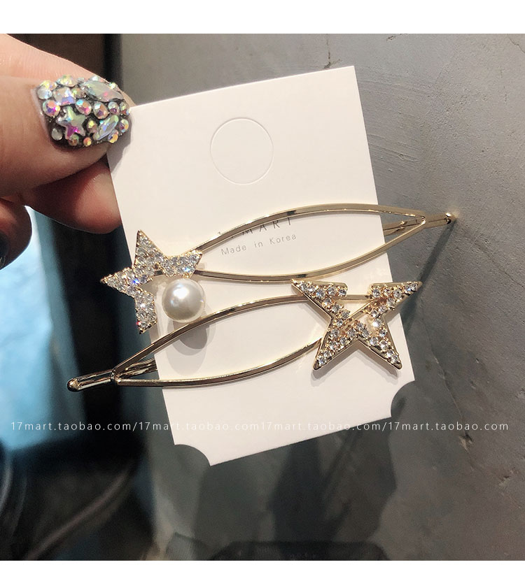 韓國頭發飾品超閃五角星水鉆珍珠發夾東大門設計感簡約氣質發卡女1入