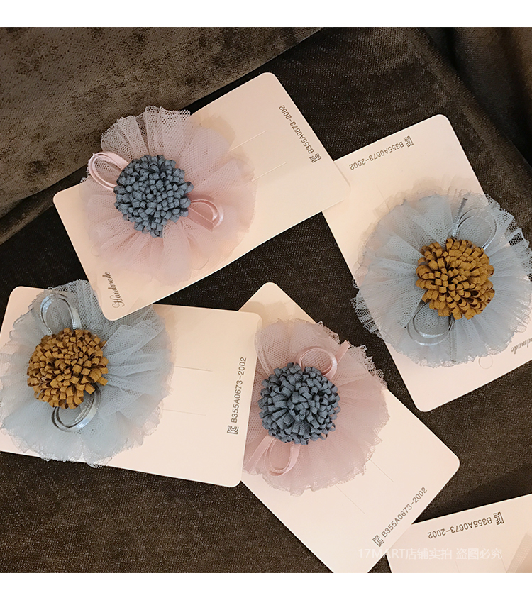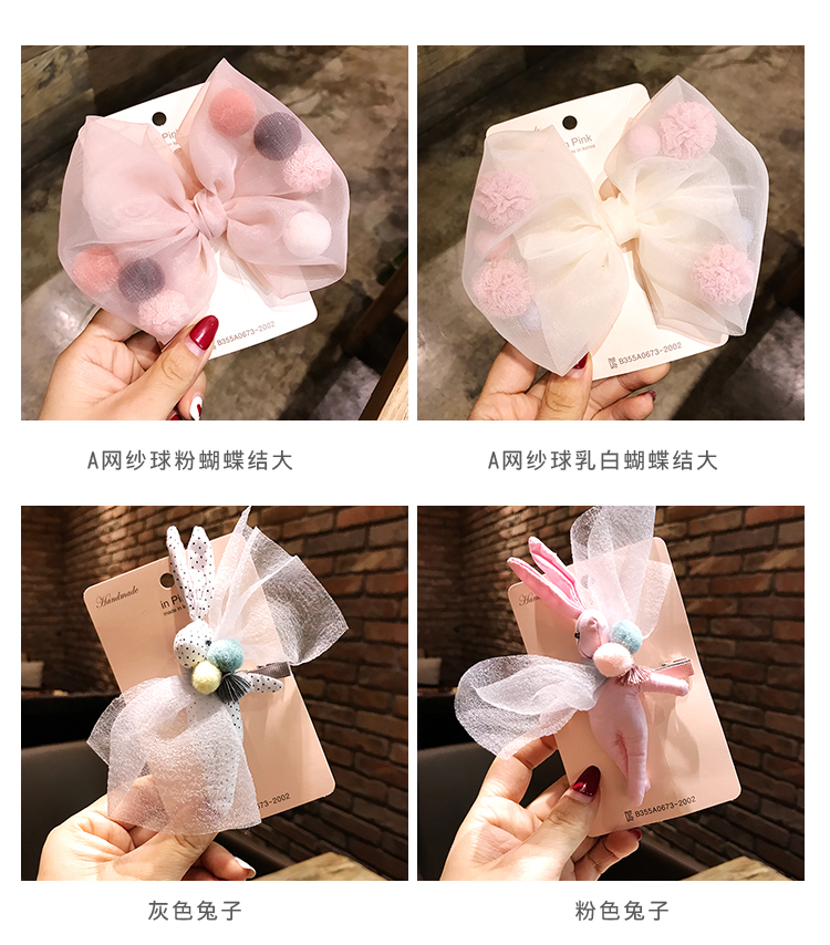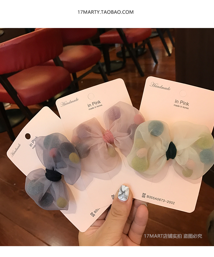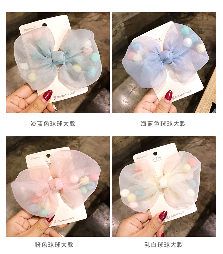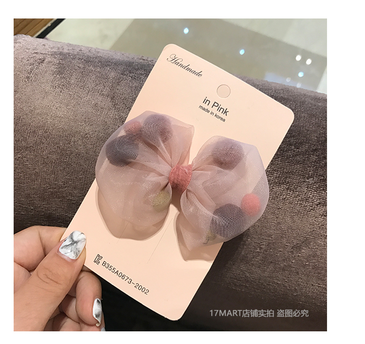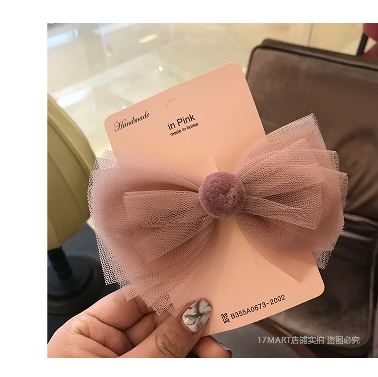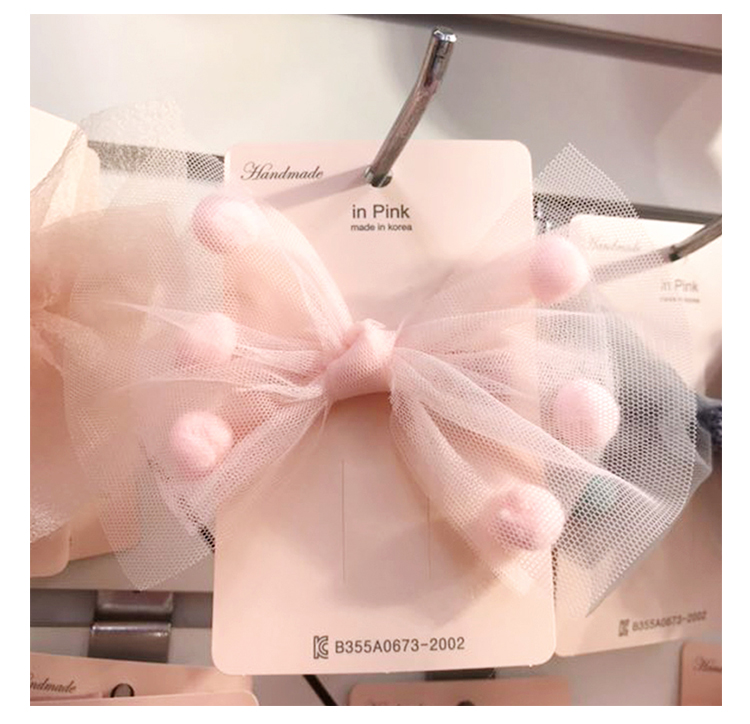 韓國頭飾InPink兒童發飾可愛網紗球球蝴蝶結發夾女童寶寶鴨嘴夾子1入