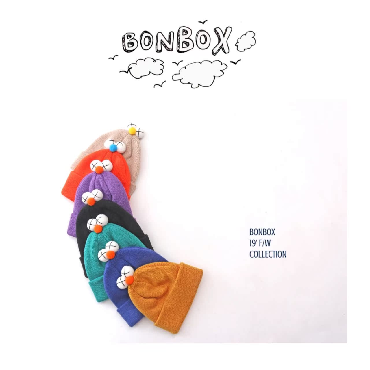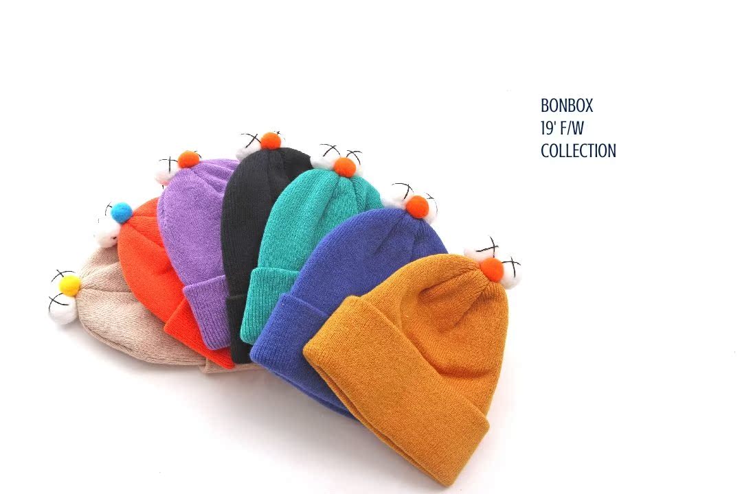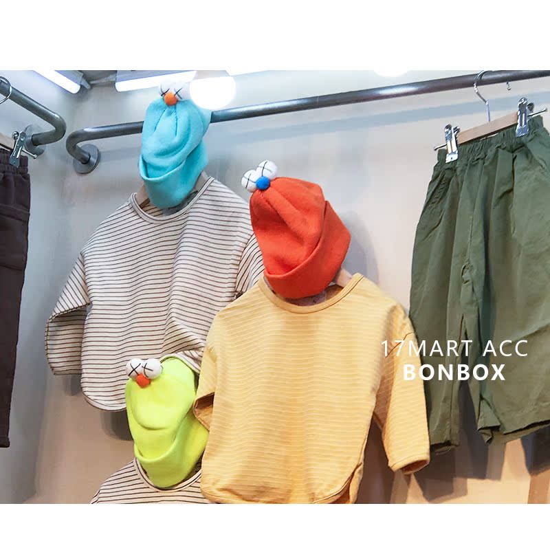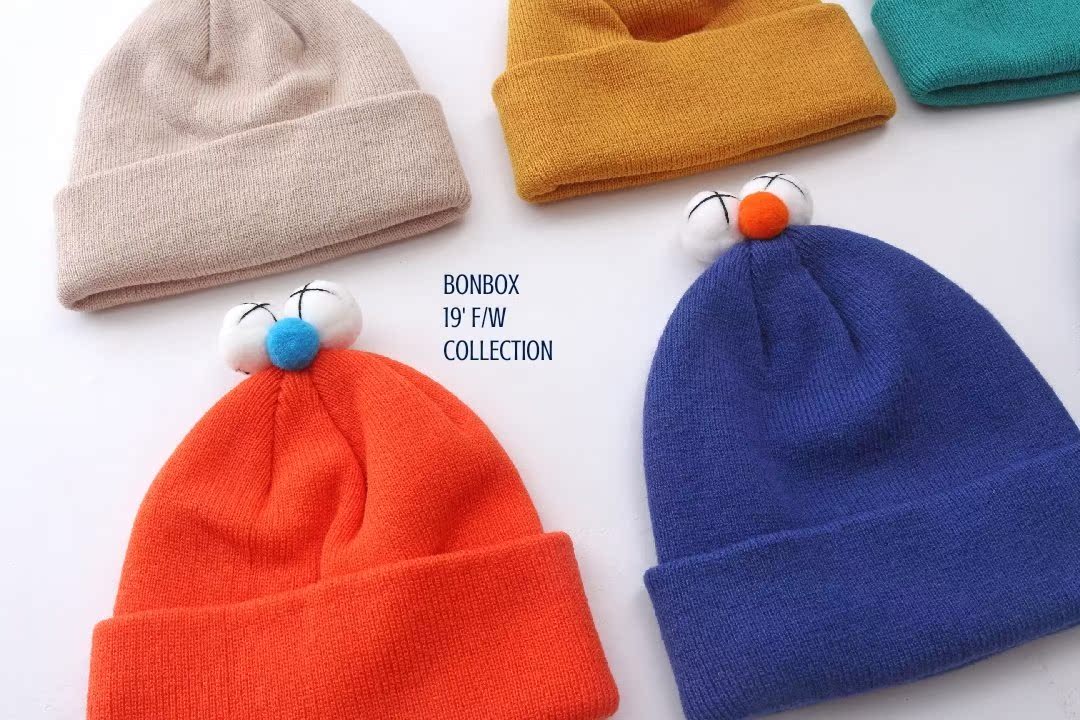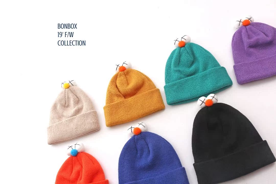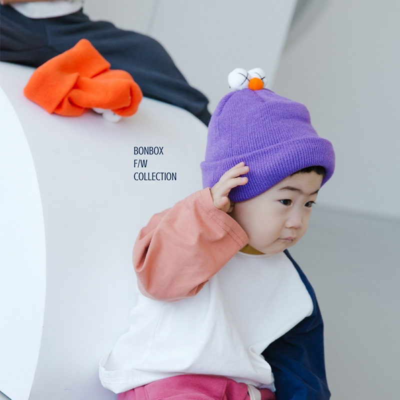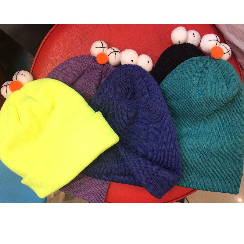 韓國進口兒童可愛眼睛毛線帽子新款糖果色男女寶寶冬季個性套頭帽1入
