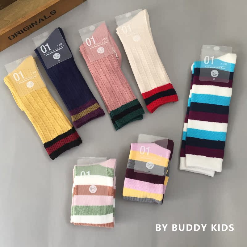 韓國兒童襪子BDkids可愛撞色粗條紋長筒襪男女童舒適透氣小腿襪潮1入