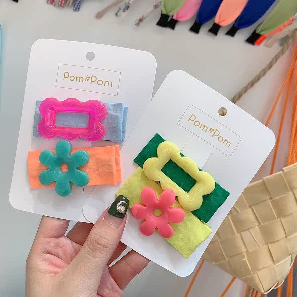 韓國進口兒童發夾女pom可愛寶寶鴨嘴夾布藝簡約套裝發飾17mart1入