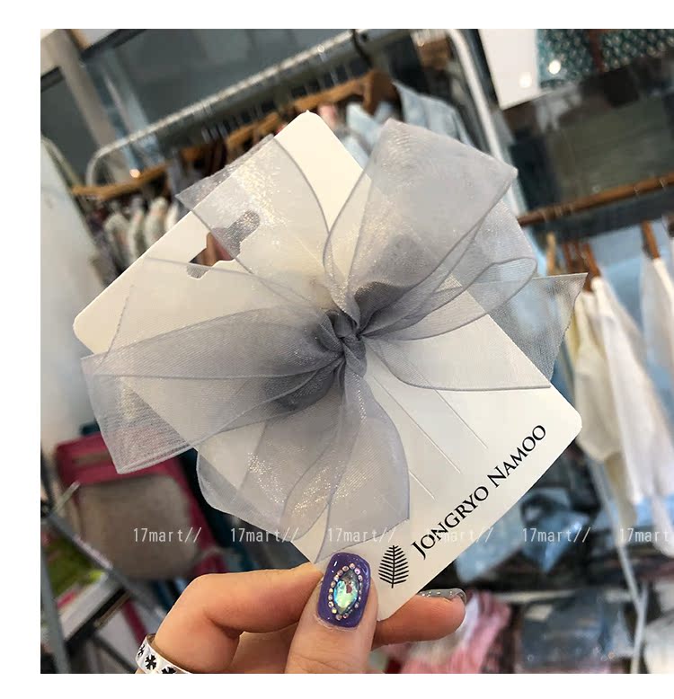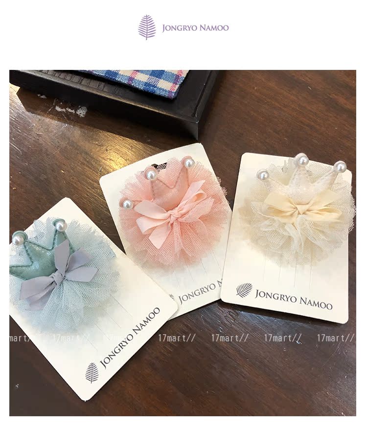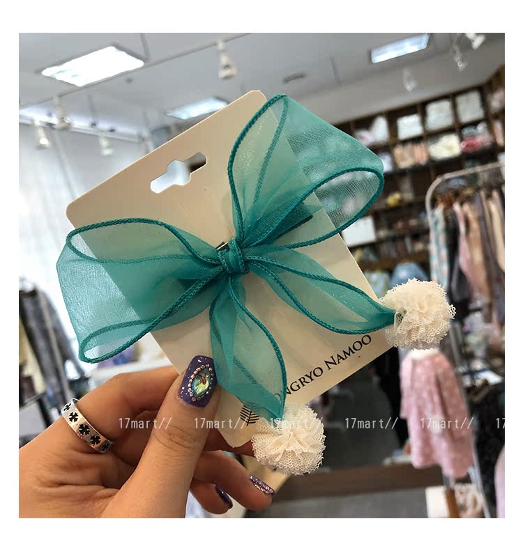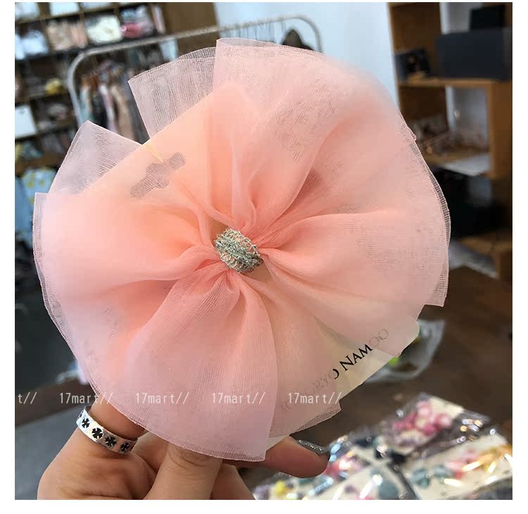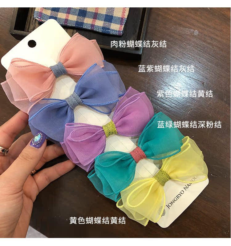 韓國進口palmtree兒童發飾甜美可愛網紗蝴蝶結發夾女孩邊夾子頭飾1入