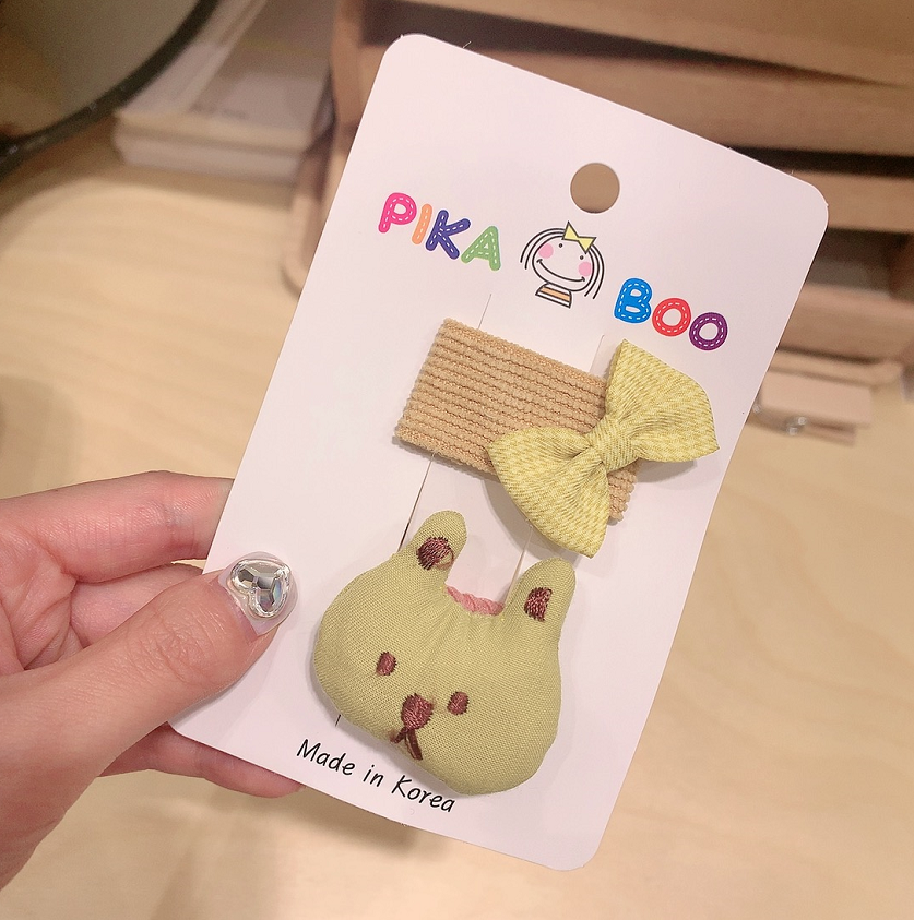 韓國進口發飾pikaboo兒童布藝糖果兔子蝴蝶結發夾發繩一套17mart1入