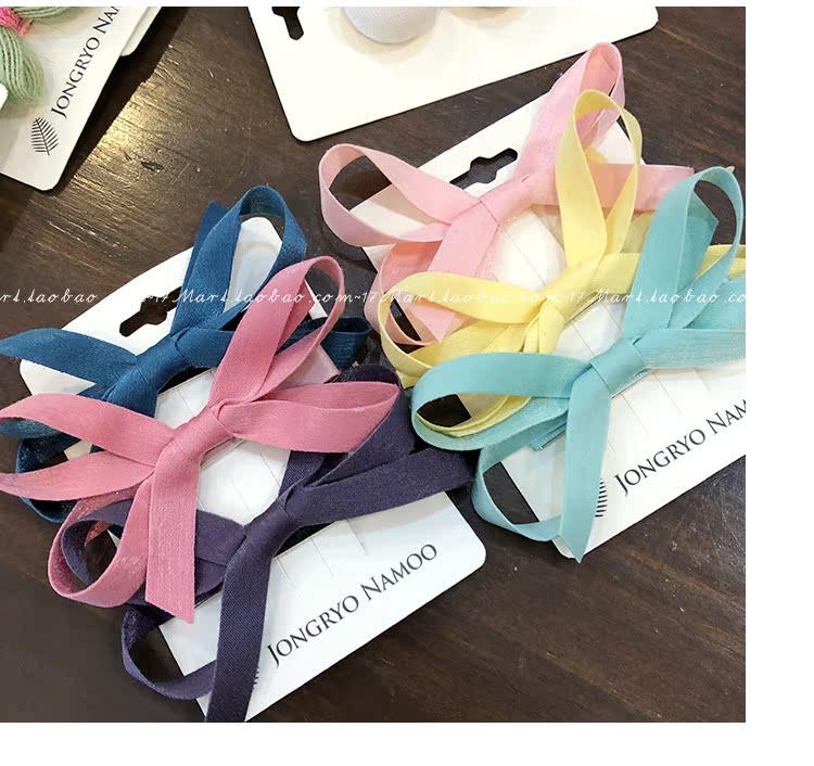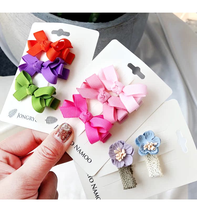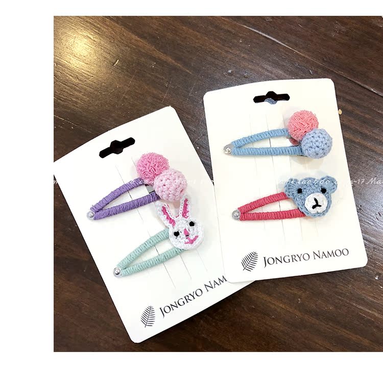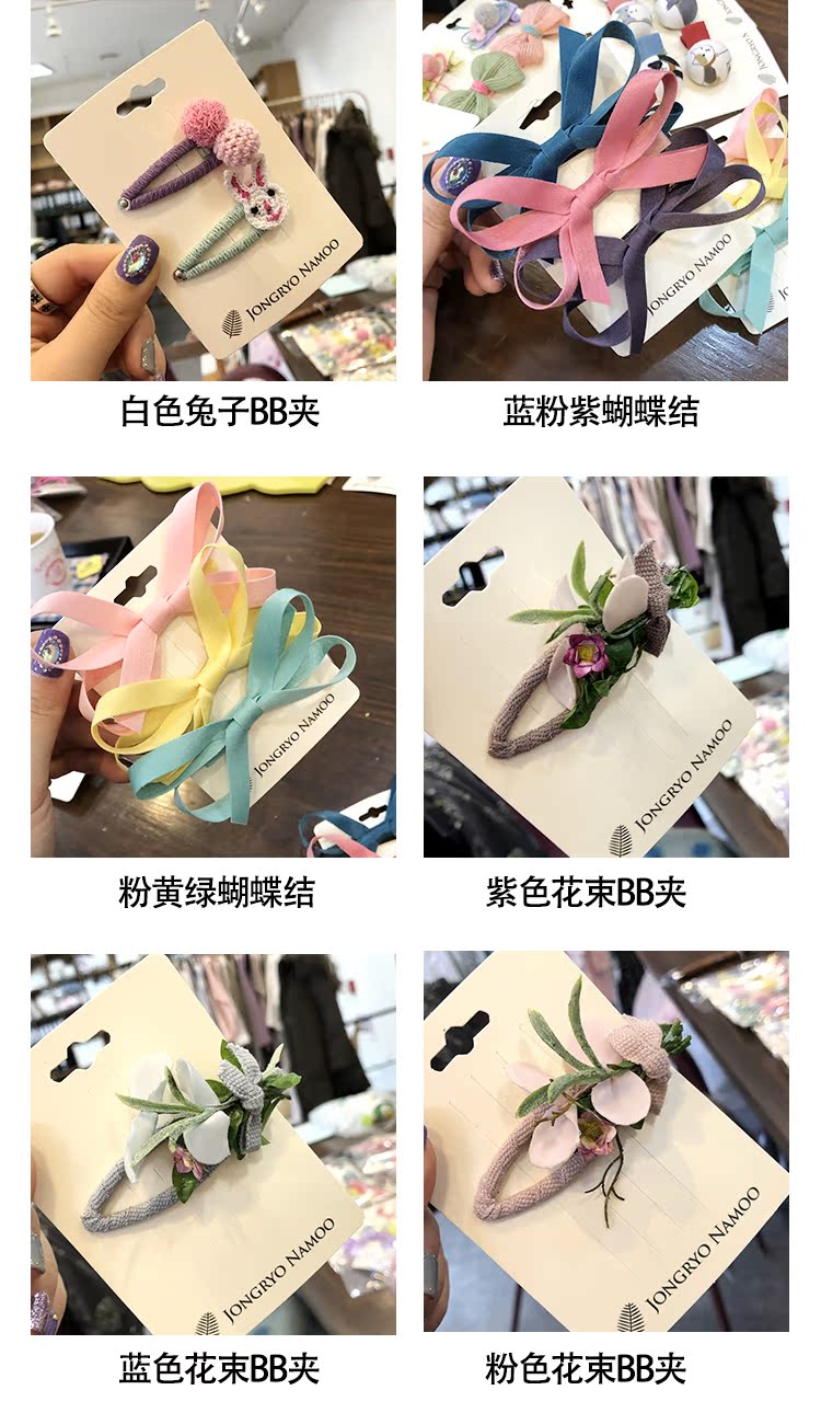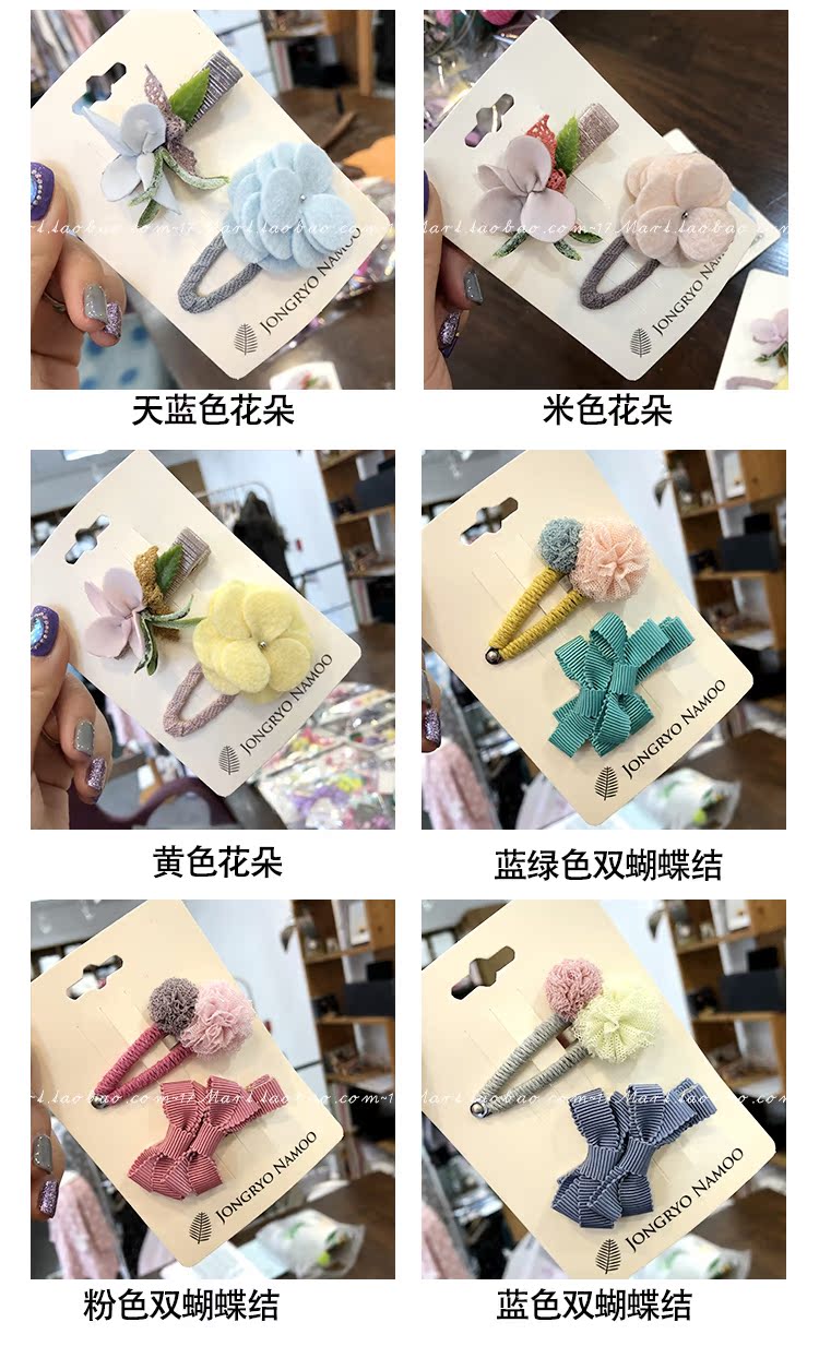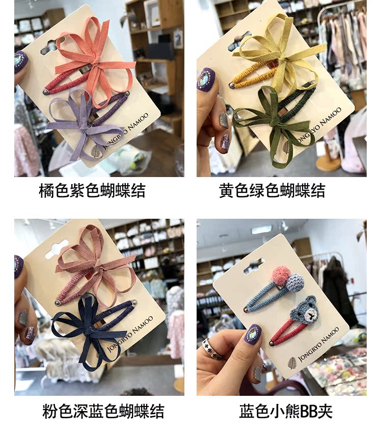 韓國進口palmtree兒童發飾可愛毛線布藝蝴蝶結發夾女孩寶寶劉海夾1入