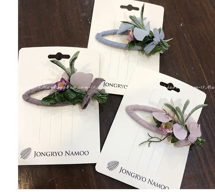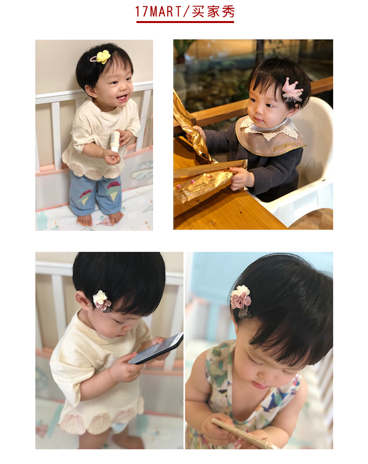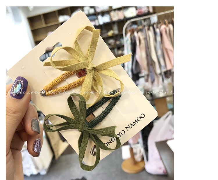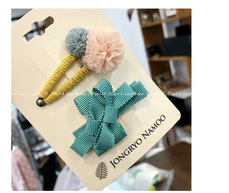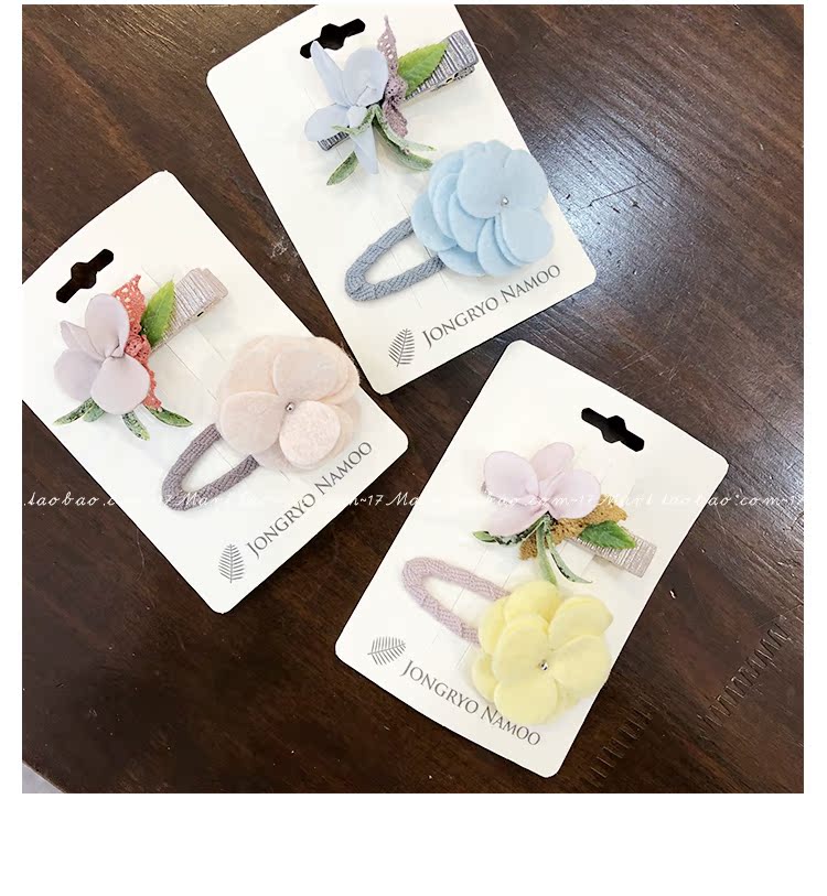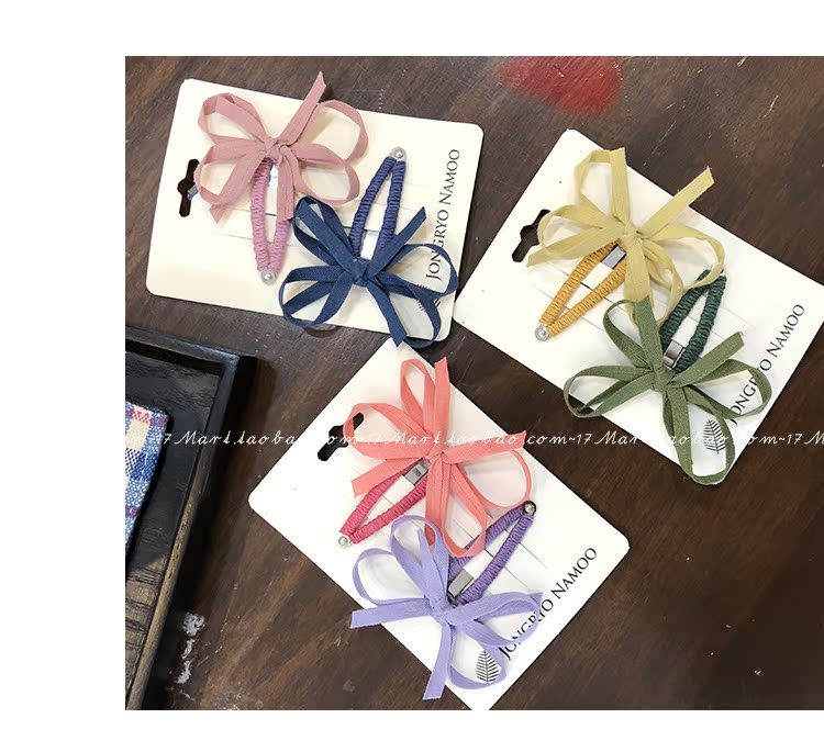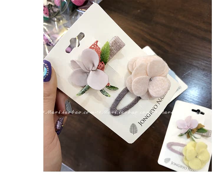 韓國進口palmtree兒童發飾可愛毛線布藝蝴蝶結發夾女孩寶寶劉海夾1入