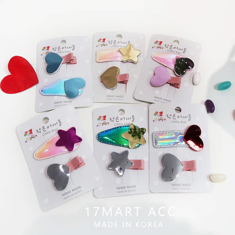 韓國進口兒童發夾Pu亮面Bb夾愛心星星鴨嘴夾女童夾子發飾頭飾發卡1入