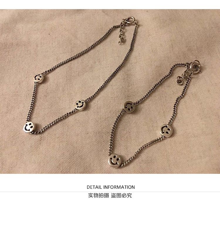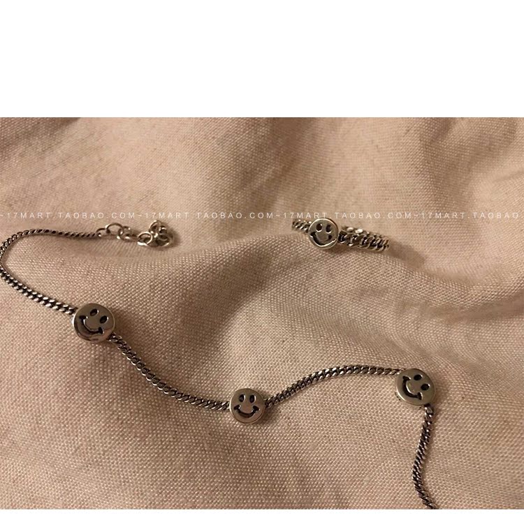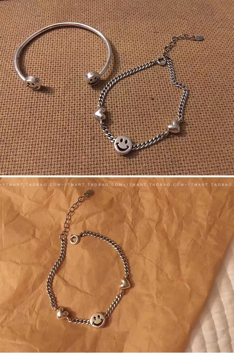 韓國手鏈女925銀笑臉手鏈GORI設計師款銀飾2019新款清新簡約手串1入