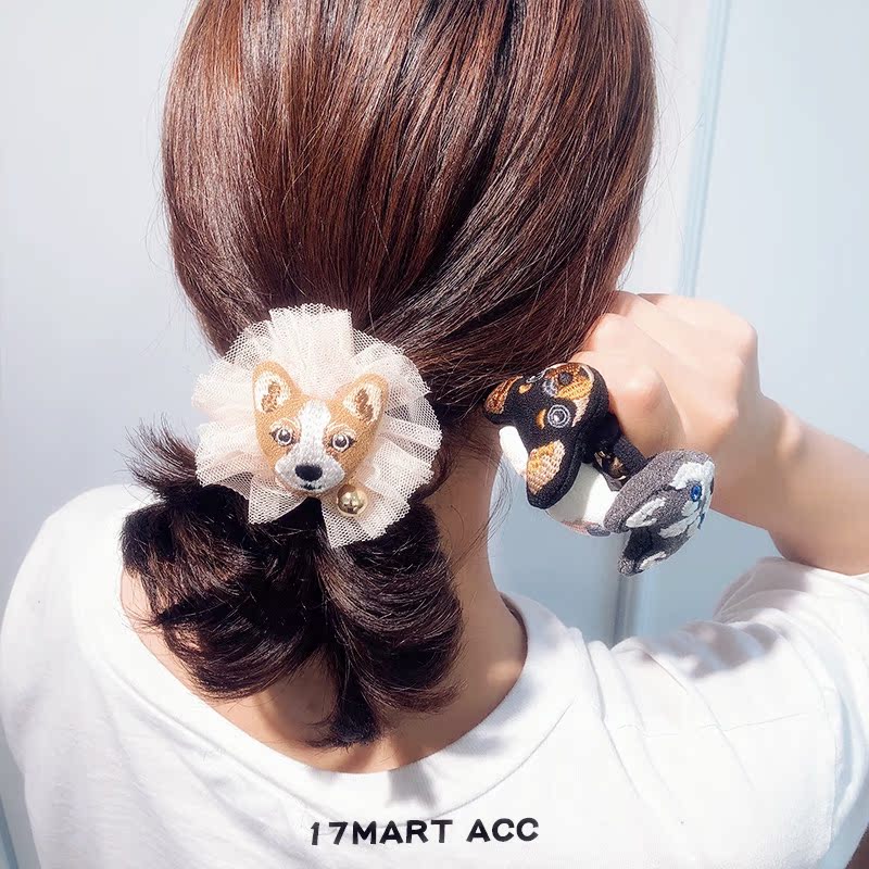 韓國兒童個性哈士奇小狗毛絨發繩女簡約網紗發圈扎頭繩頭飾17mart1入