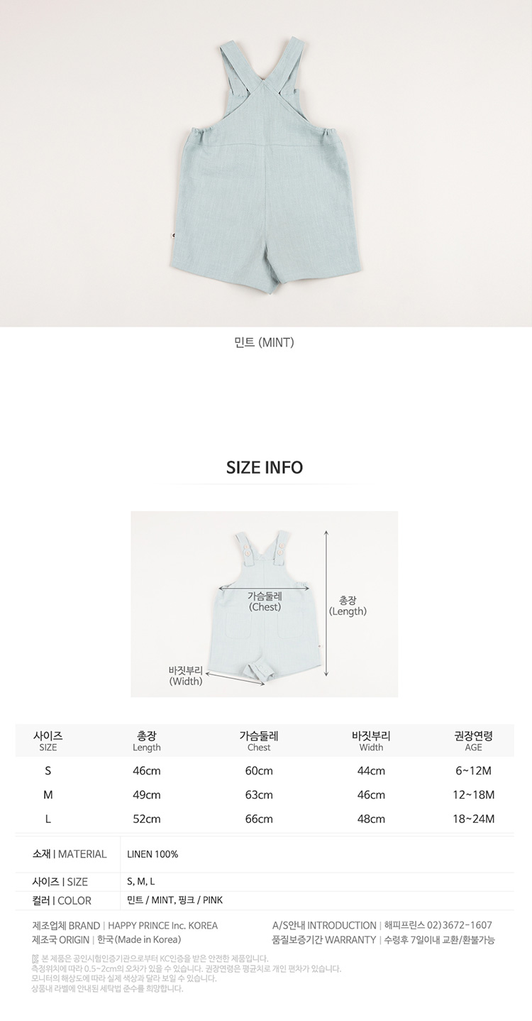 韓國進口Kidsclara童裝服飾可愛背帶褲男女寶寶春夏季新款連身褲1入