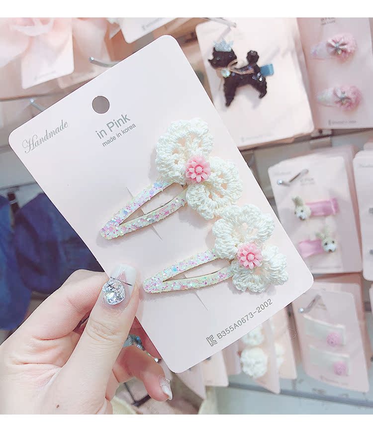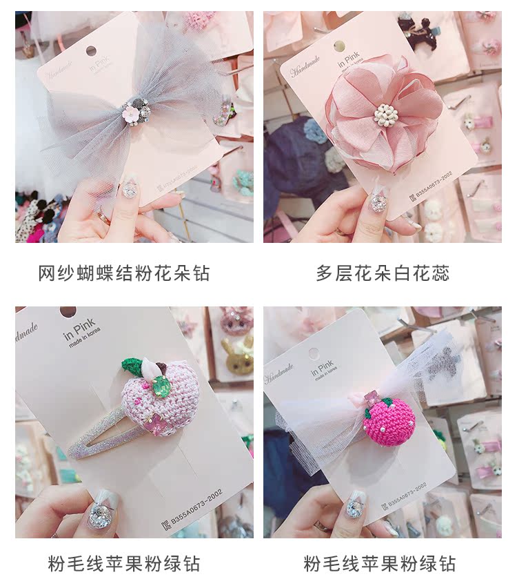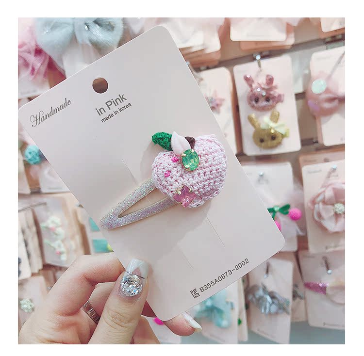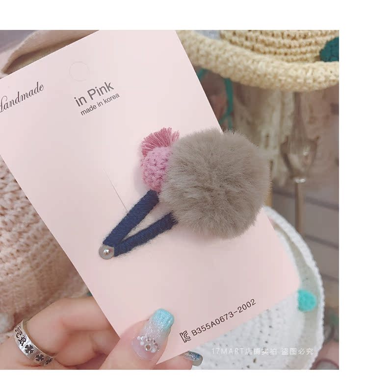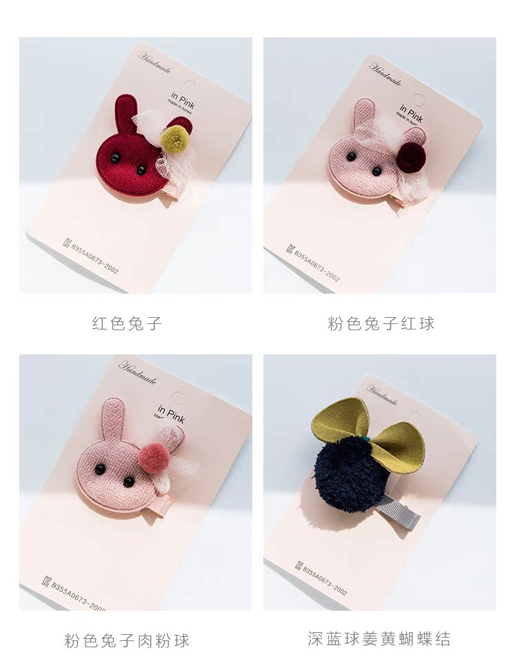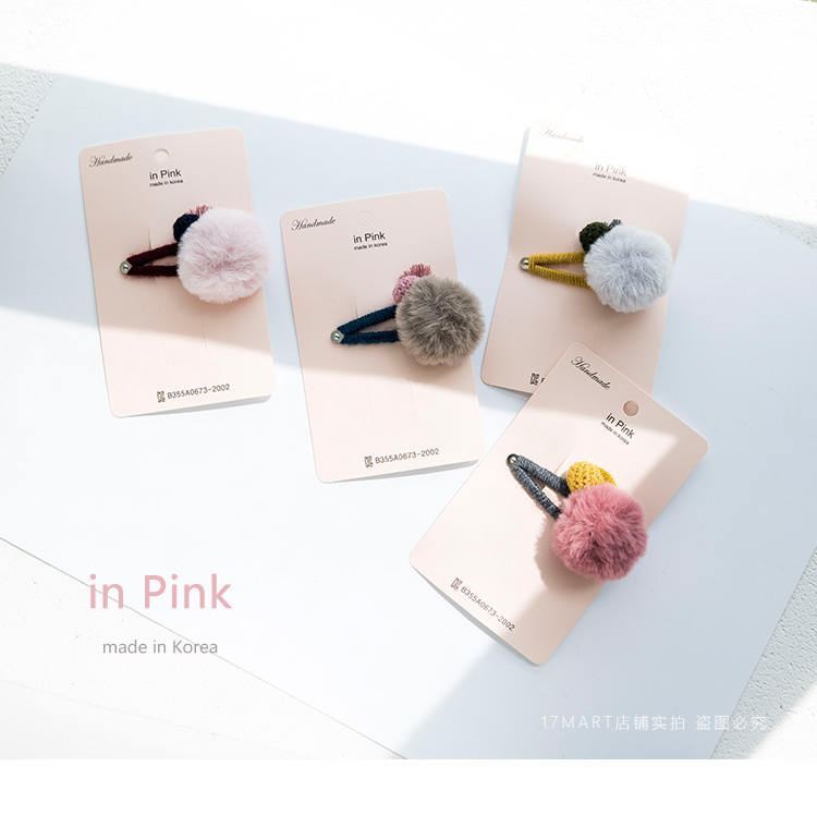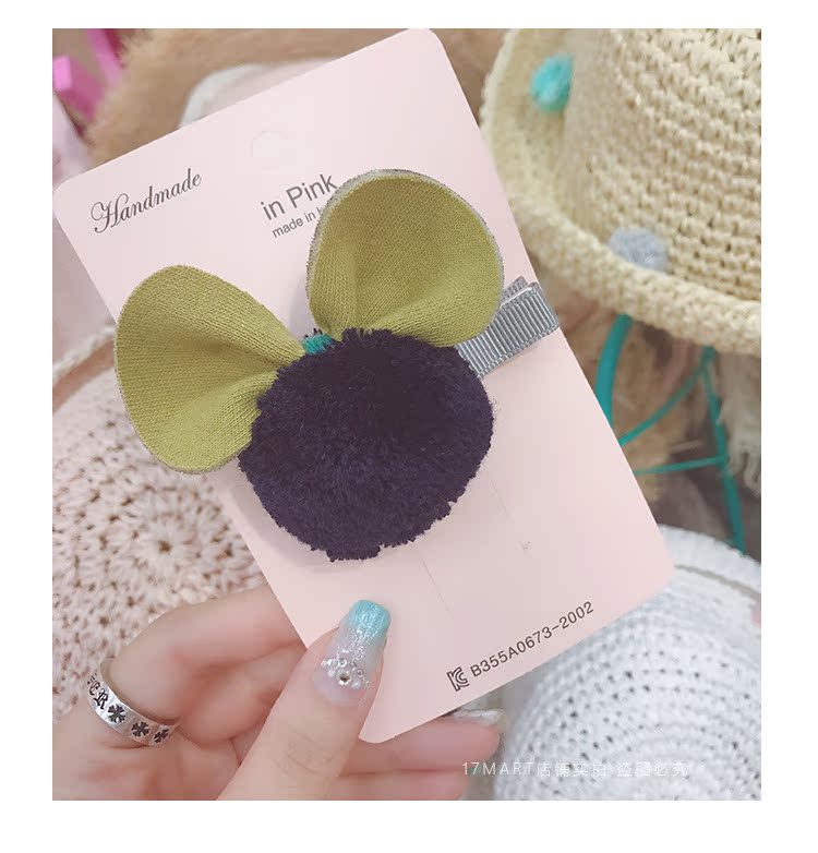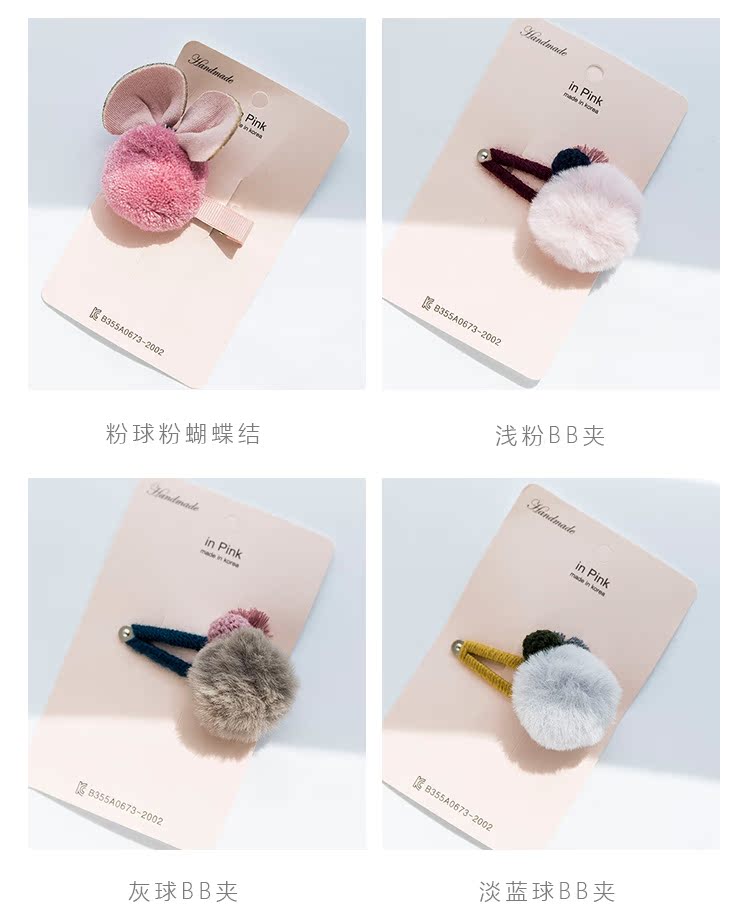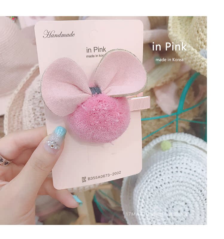 韓國進口inpink兒童頭飾可愛兔耳朵發夾毛球bb夾劉海邊夾女童發飾1入