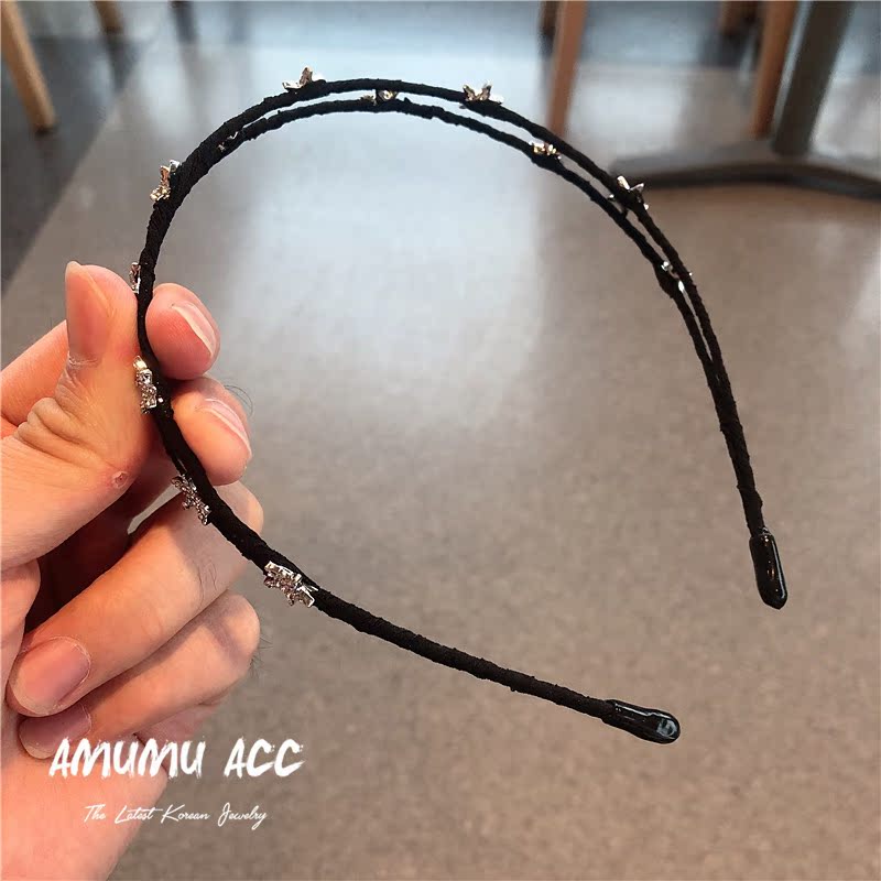 雙股閃鉆星星黑色細款壓發頭箍發卡氣質百搭簡約發箍發飾1入