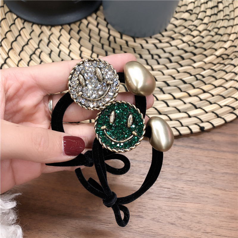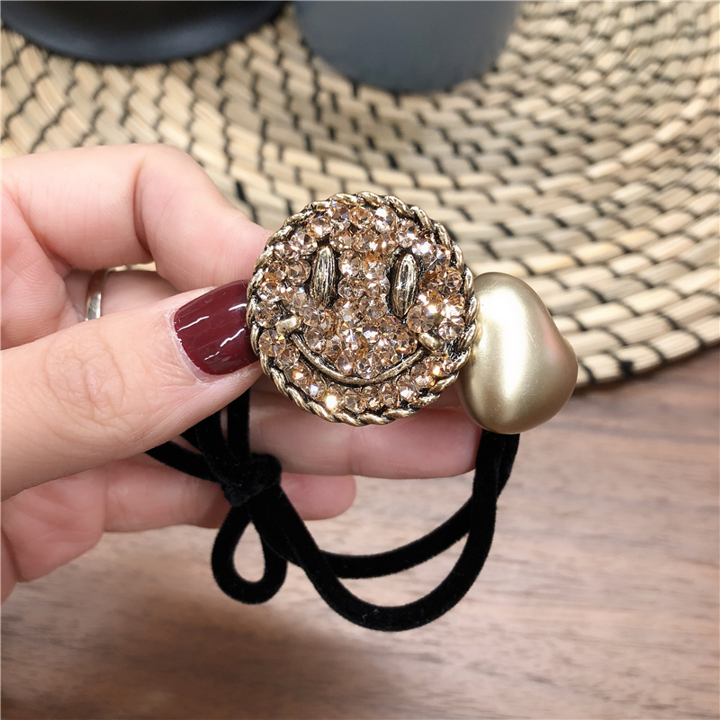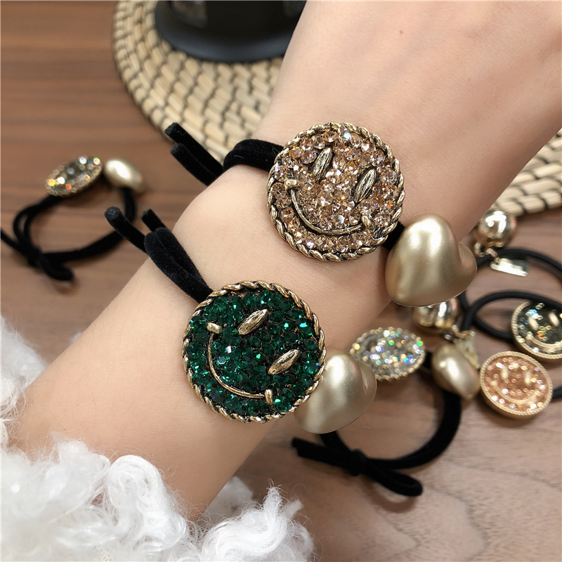 高檔奢華水鉆笑臉雙層蝴蝶結發繩百搭愛心皮筋發圈1入
