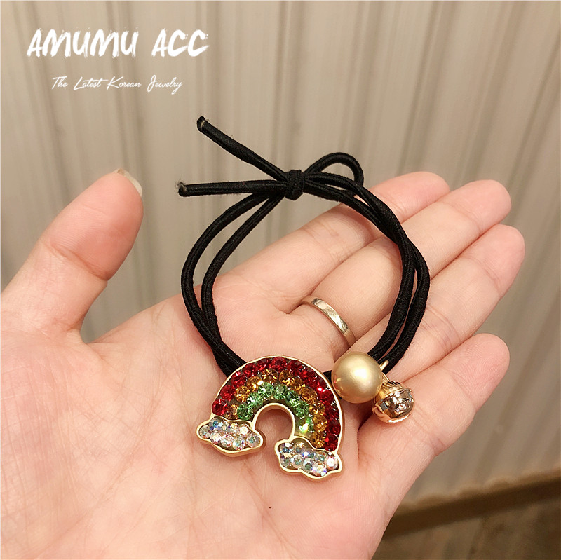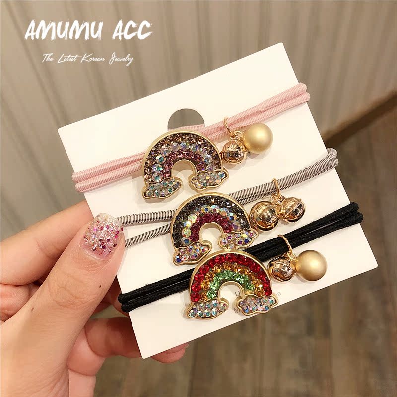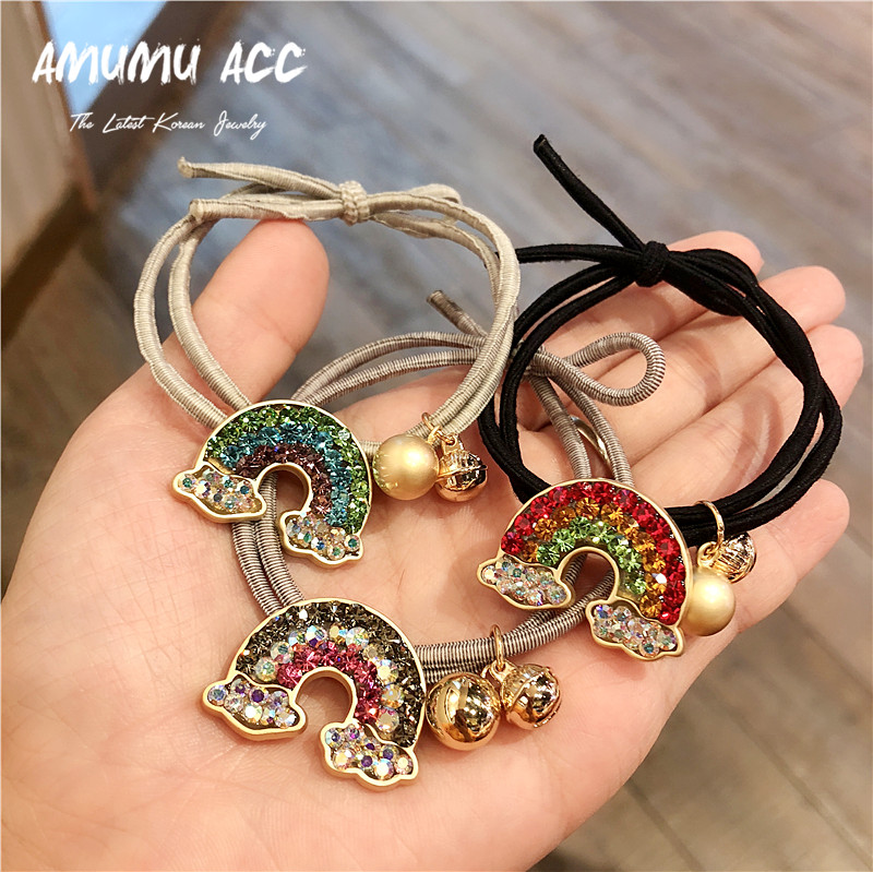 重工水鉆彩虹少女扎丸子頭皮筋發圈百搭撞色鈴鐺發繩女1入