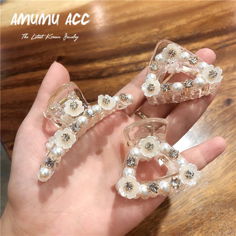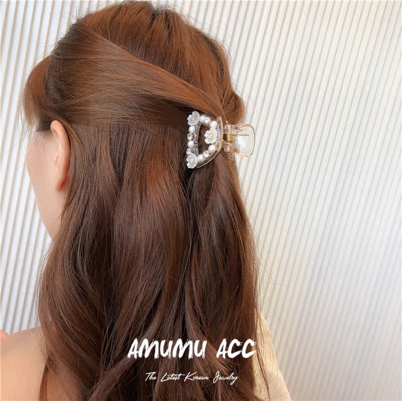 進口超仙可愛透明小抓夾劉海夾百搭貝殼花朵后腦勺發夾1入