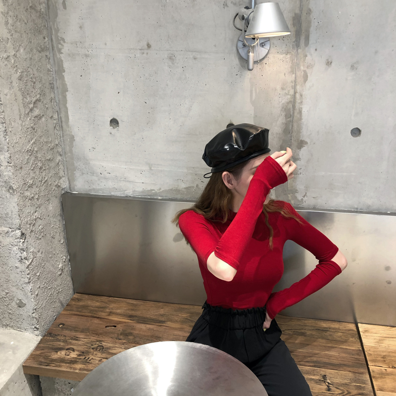韓版圓領鏤空長袖t恤女2019秋季新款白色打底衫純色內搭修身上衣1入