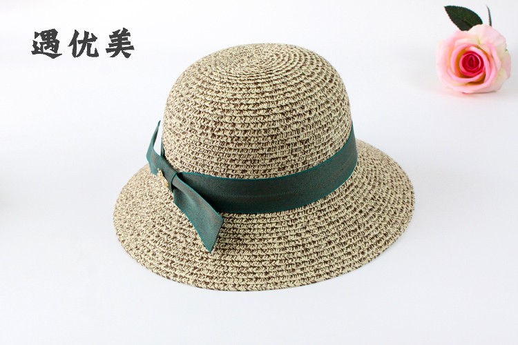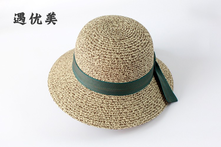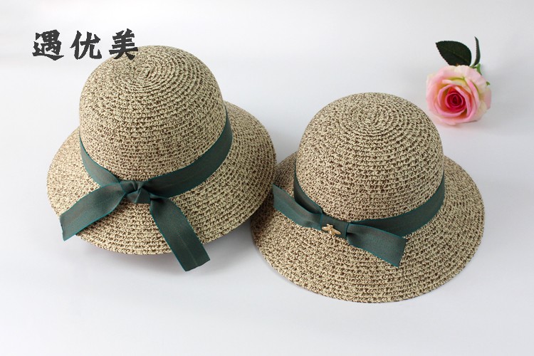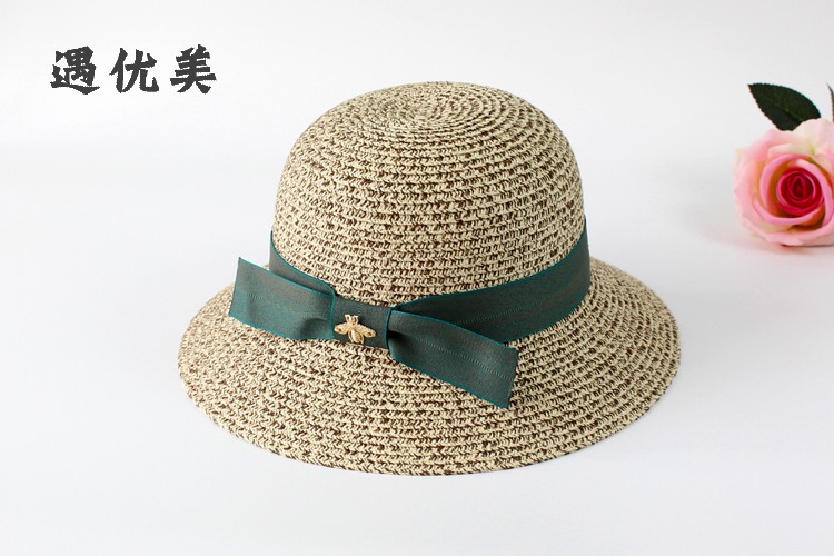 遇優美小蜜蜂漁夫帽 ins女韓版遮陽太陽帽沙灘防曬帽文藝遮臉草帽1入