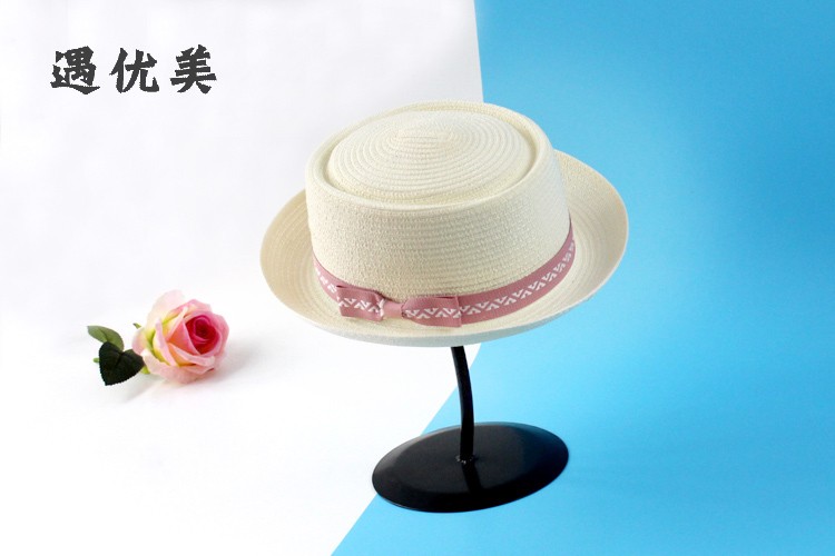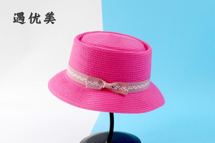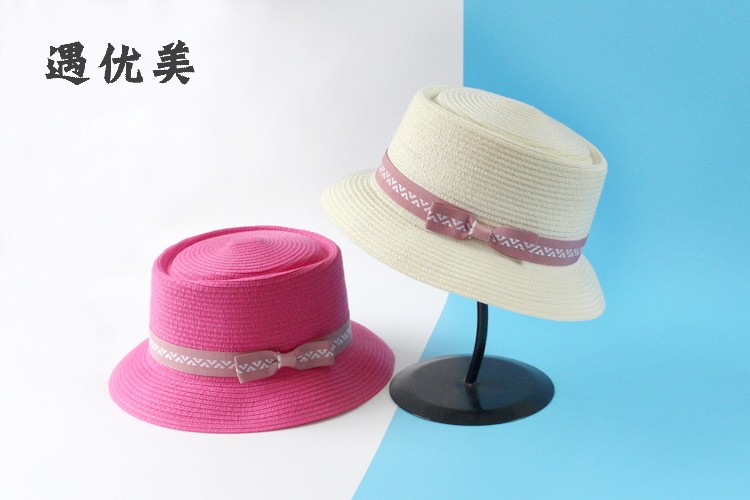 遇優美 日系潮帽凹頂細棉草編禮帽百搭清新小卷帽女士遮臉太陽帽1入