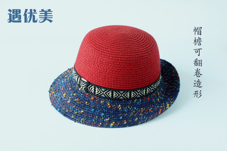 遇優美 秋季出行女帽拼色度假遮陽帽時尚折疊漁夫帽優雅出游好搭1入