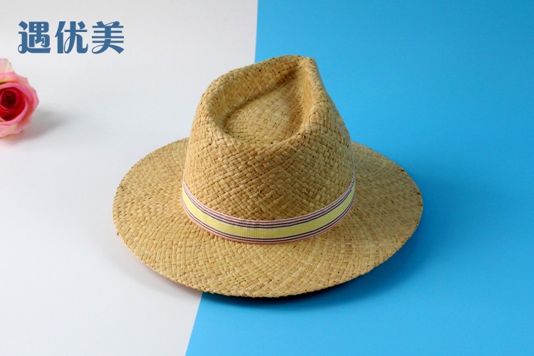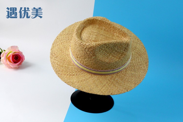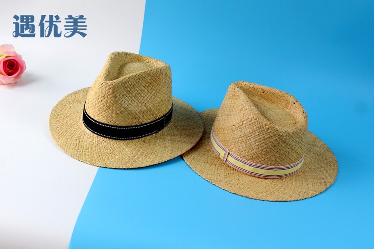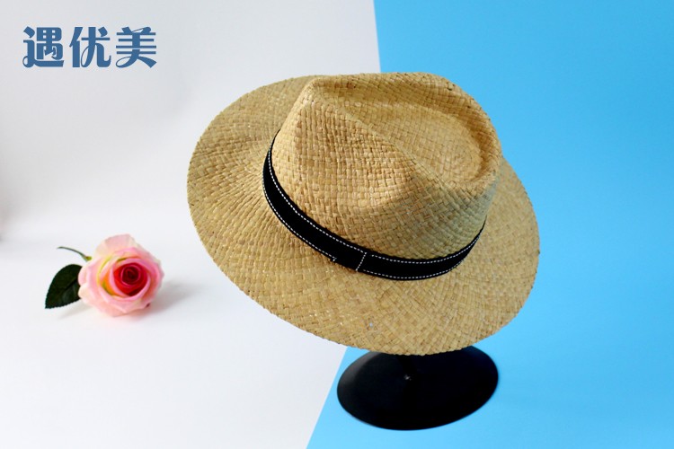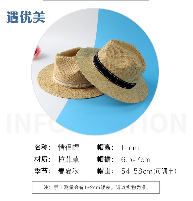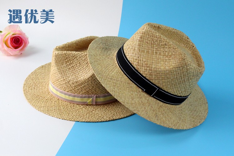 遇優美 高品質時尚拉菲草帽子男士遮陽帽爵士禮帽防曬帽平檐草帽1入