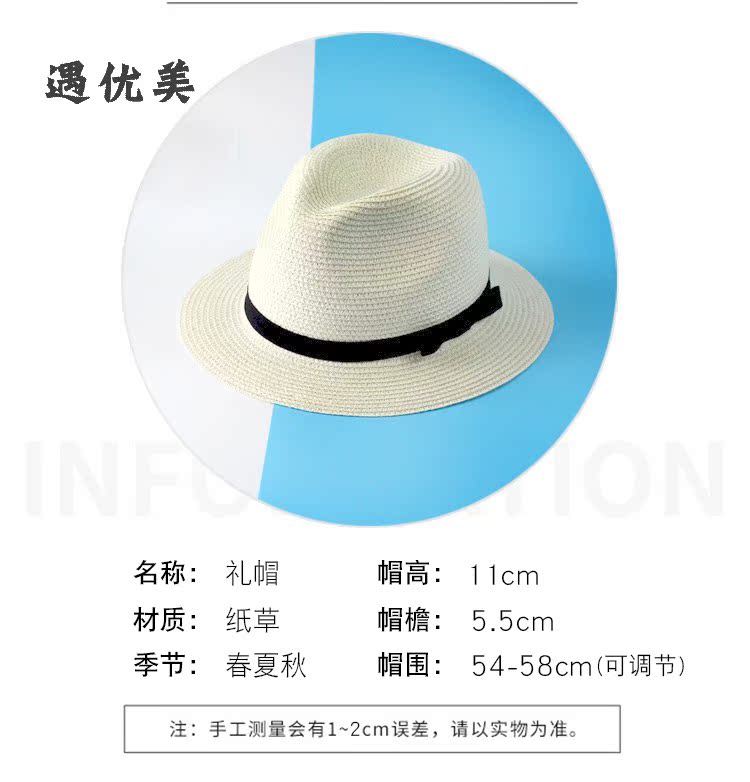 遇優美 小檐系草帽爵士太陽帽百搭休閑防曬草帽透氣好度假遮陽帽1入