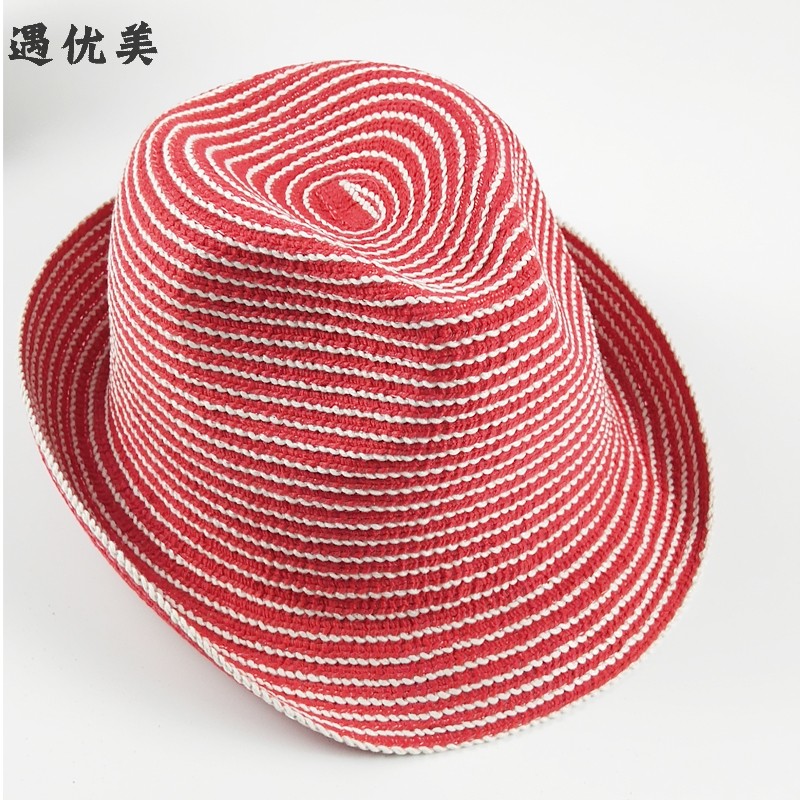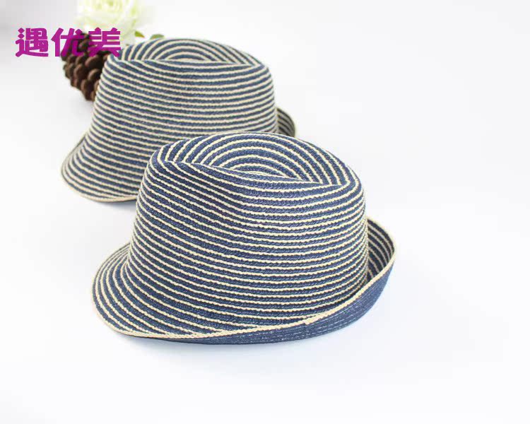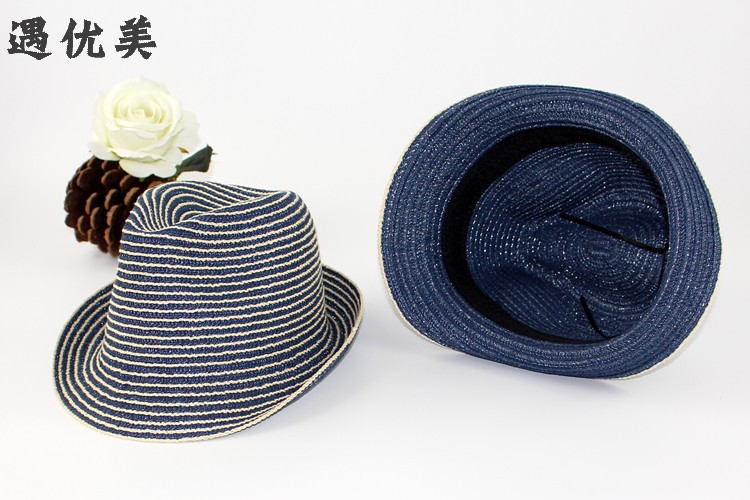 雙面可戴的禮帽,深情海的顏色,條紋線條原材質裝飾,