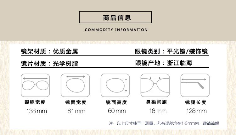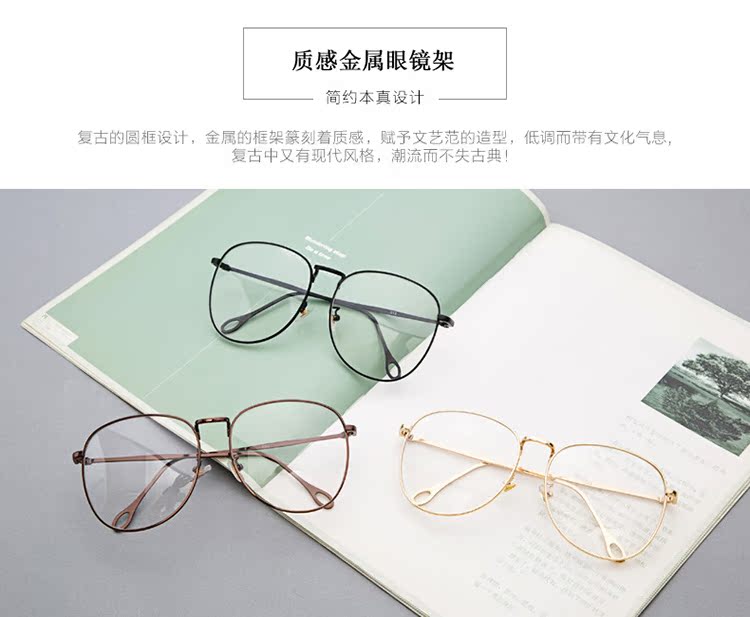 費啟鳴同款眼鏡大框素顏文藝男女同款金屬顯瘦網紅裝飾韓版潮復古1入