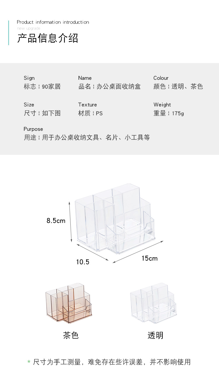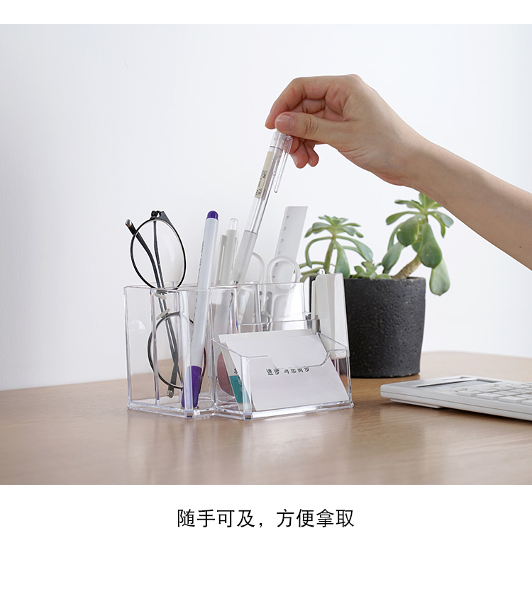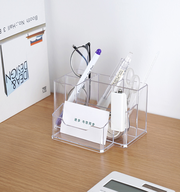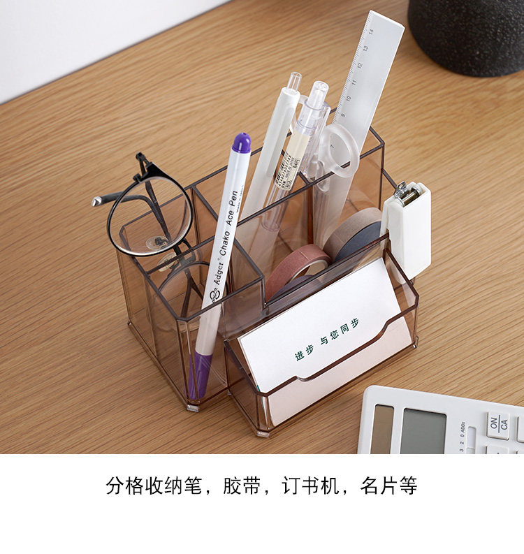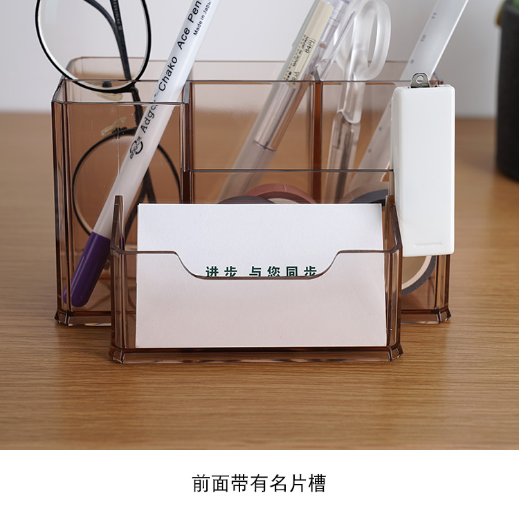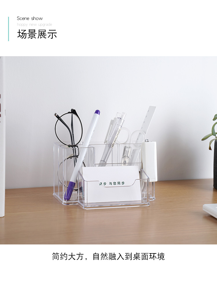 透明筆筒創意時尚多功能亞克力大容量辦公室桌面名片盒文具收納盒1入